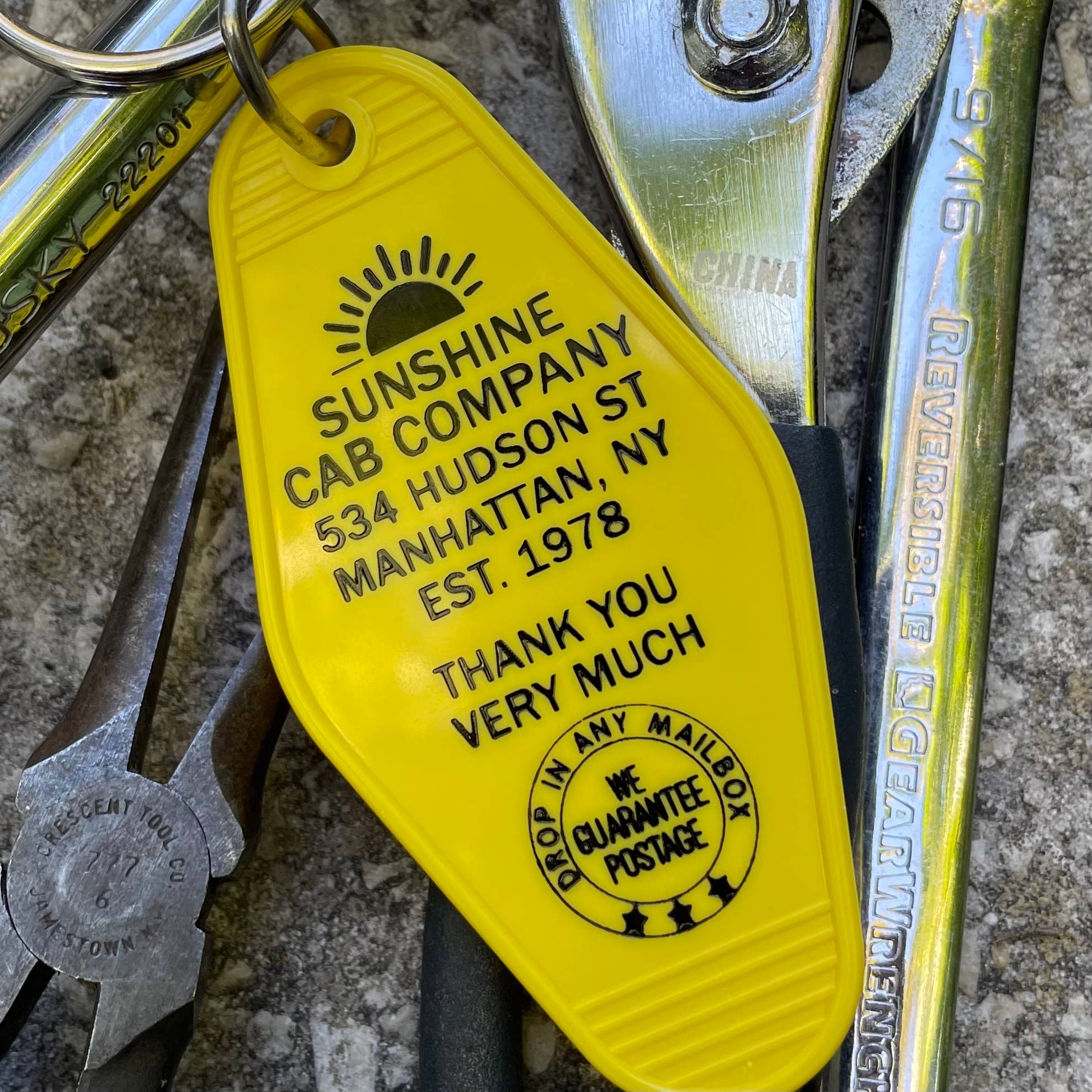 Vintage stil motel nøglefobs, komplet med 32 mm slip ring, Hangout/BBQ joint fra Dukes of Hazzard NYHEDER FLASH!! Vi gør nu vores egen i hus sprøjtestøbning til plastfob. Hvad det betyder er, at dette er 100% Made In America, og vi har flere farvemuligheder. Vi har også tilføjet en ekstra ring til fob, så den hænger fladt!