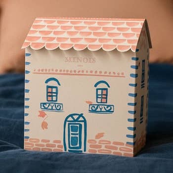 Trækiste med 6 blå og hvide skuffer