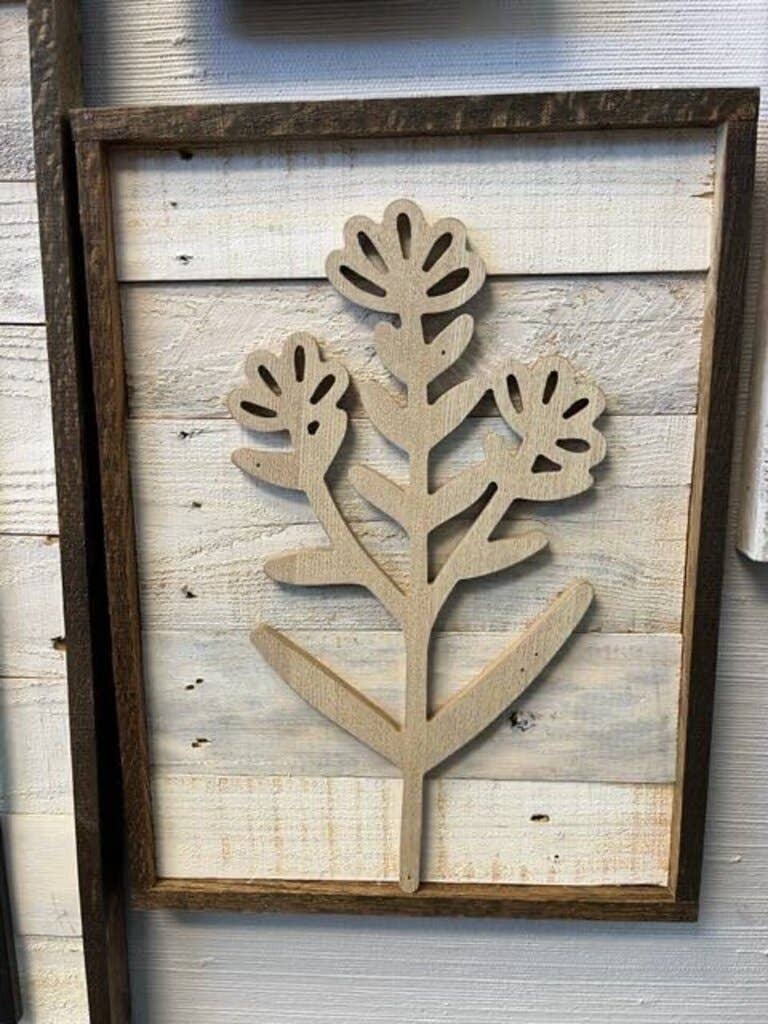 Håndlavet ved hjælp af genbrugte paller som baggrund og ramme. Et ekstra metal- og/eller træstykke er monteret. Hvis genstanden er beregnet til at blive hængt op, placeres en wire på tværs af bagsiden for nem ophængning.