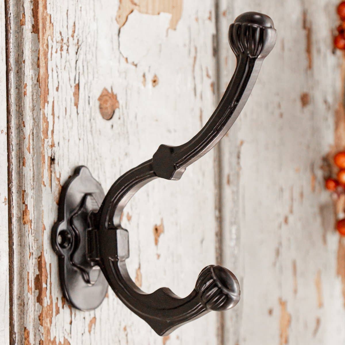 Lille dekoreret knage i jern, rød (kobberfarvet)