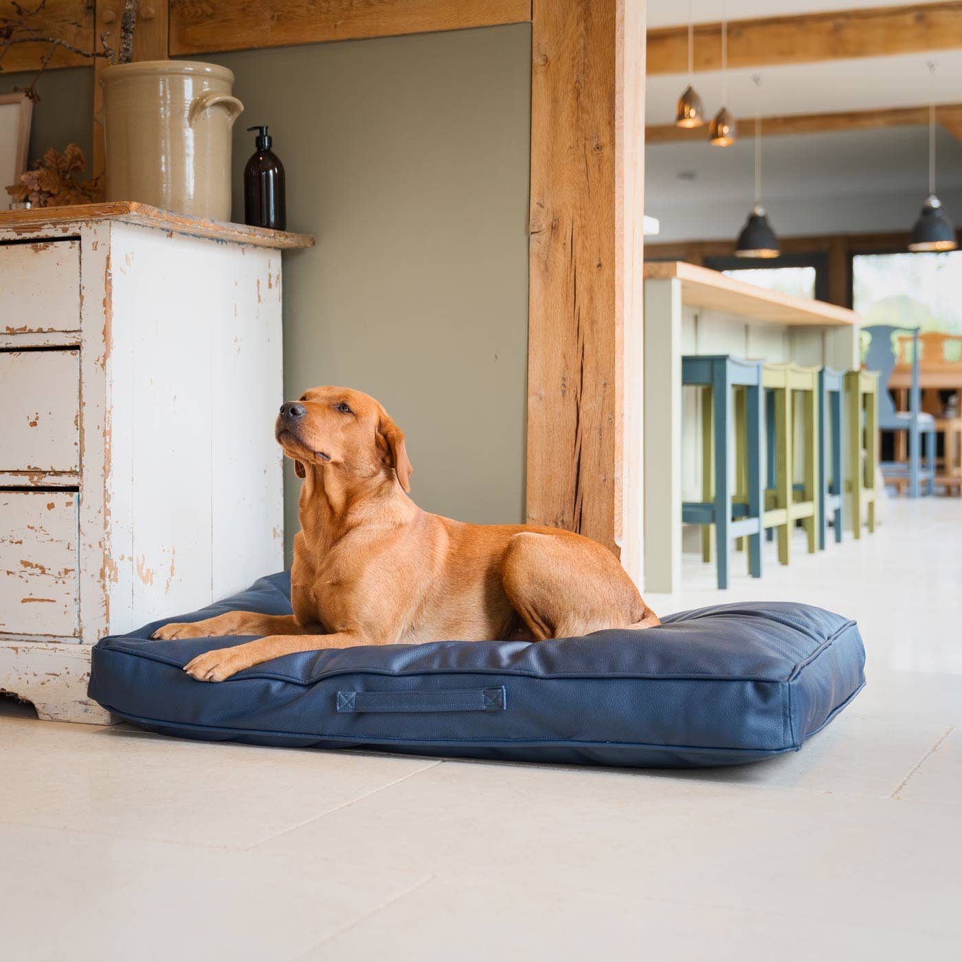 * Holdbar seng designet til at være super stærk * Vandtæt hundeseng * Blegemiddel, der kan rengøres * Tygge- og ridsefast imiteret læder * Fyldt med ekstra dyb hulfiberfyldning * Ikke-aftageligt pudebetræk - ingen lynlåse eller lukninger for at modvirke tygning * Håndlavet design fås i 3 størrelser og 6 farver, der passer til alle racer