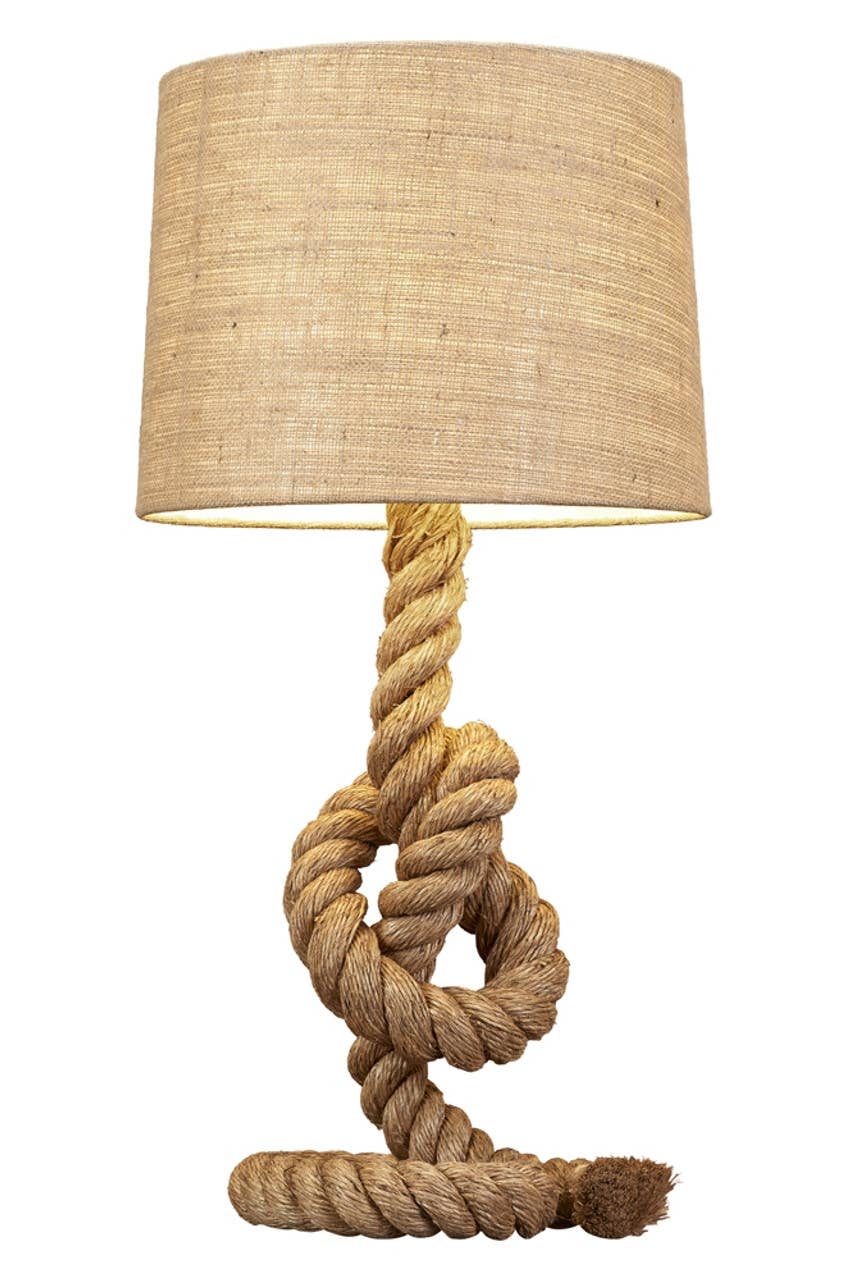 Rope Table Lamp Knot Størrelse 28" TallDenne rebbordlampe er smuk og unik stil, som hele familien vil elske. Natural Design House nautiske lamper er lavet med helt naturligt reb og parret med neutralfarvede bomulds lampeskærme. Find nautiske bordlamper med reb udformet til kreative vendinger eller bundet til traditionelle nautiske knuder. Uanset om du dekorerer et soveværelse, stue eller endda en spisestue med denne marine lampe, vil du være sikker på at imponere alle, der kommer for at se den. On-line tænd/sluk-kontakt, UL-listet, en 60 watt pærestik.