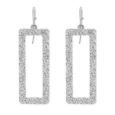 Sølv tekstureret åbent rektangel 2" ørering