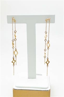 Guld messing kløver og krystaldråbe 2" ørering