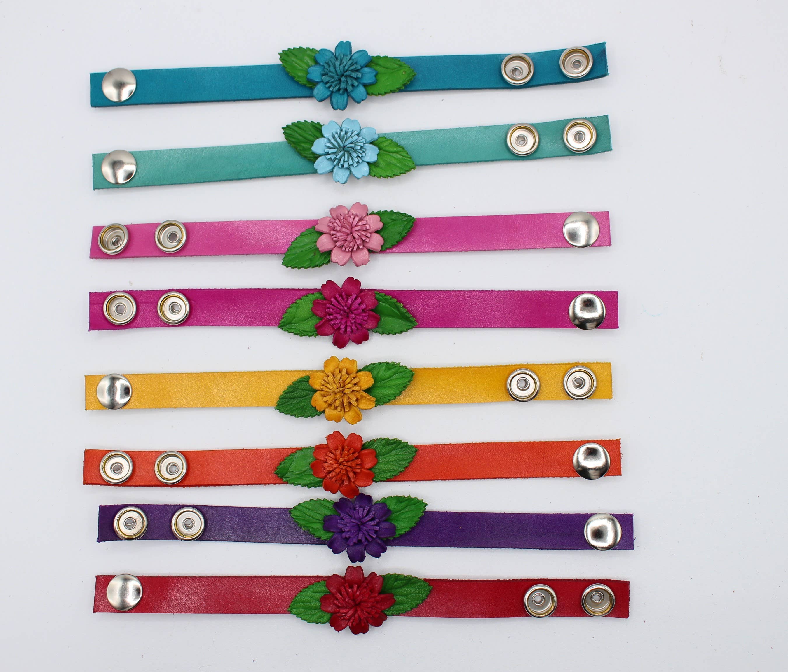Håndlavet lille blomsterlæderarmbånd assorteret