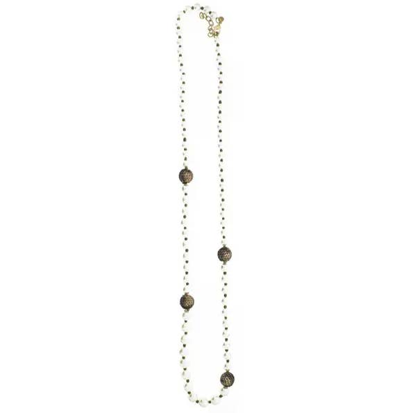 Lang stål- og sten halskæde