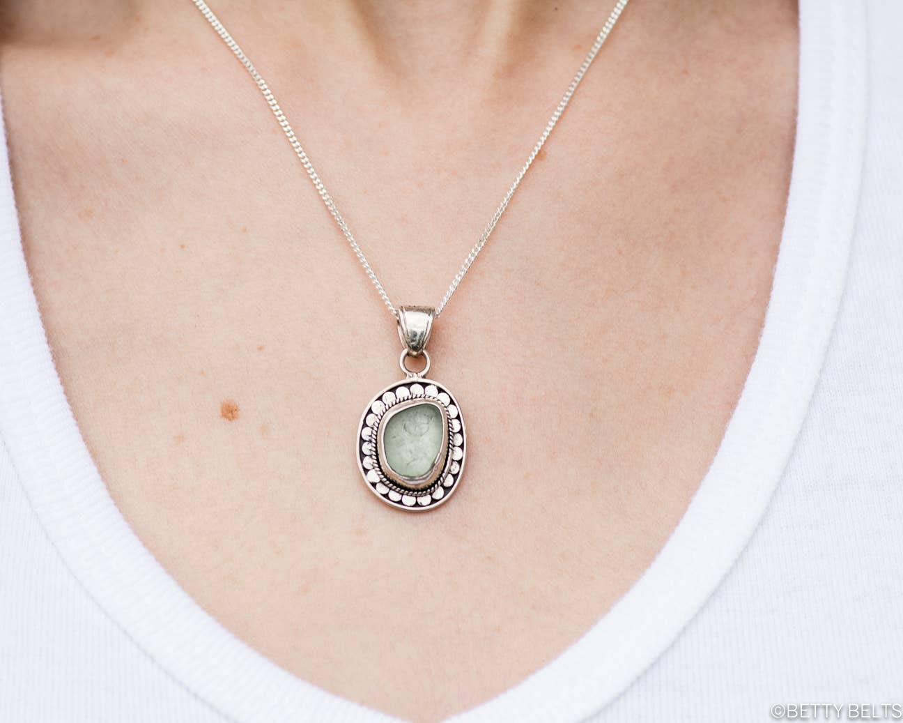Inspireret af surferpigen Cayden Edman fra Team Betty er Cayden designet til friåndede havfruer med en vild sjæl, der svømmer eller surfer i havene med eventyrlyst i hjertet. De håndmalede stammemønstre med prikker er en traditionel balinesisk udsmykning, specialiseret af et ægtepar blandt vores smede. Dimensioner: 1,3 - 1,9 cm i højden inklusive ramme (størrelse mellem en dime og en nickel). Egenskaber: - Originalt Betty B.-design - Garanteret ægte havglas - Kvalitetsgaranti - Nikkel-fri .925 massiv sterlingsølv - Håndlavet med kærlighed i Bali Bemærk: Din ordre vil ikke være det præcise produkt på billedet. Glasformen og farverne kan variere, men vi lover at sende dig den smukkeste, vi har på lager.