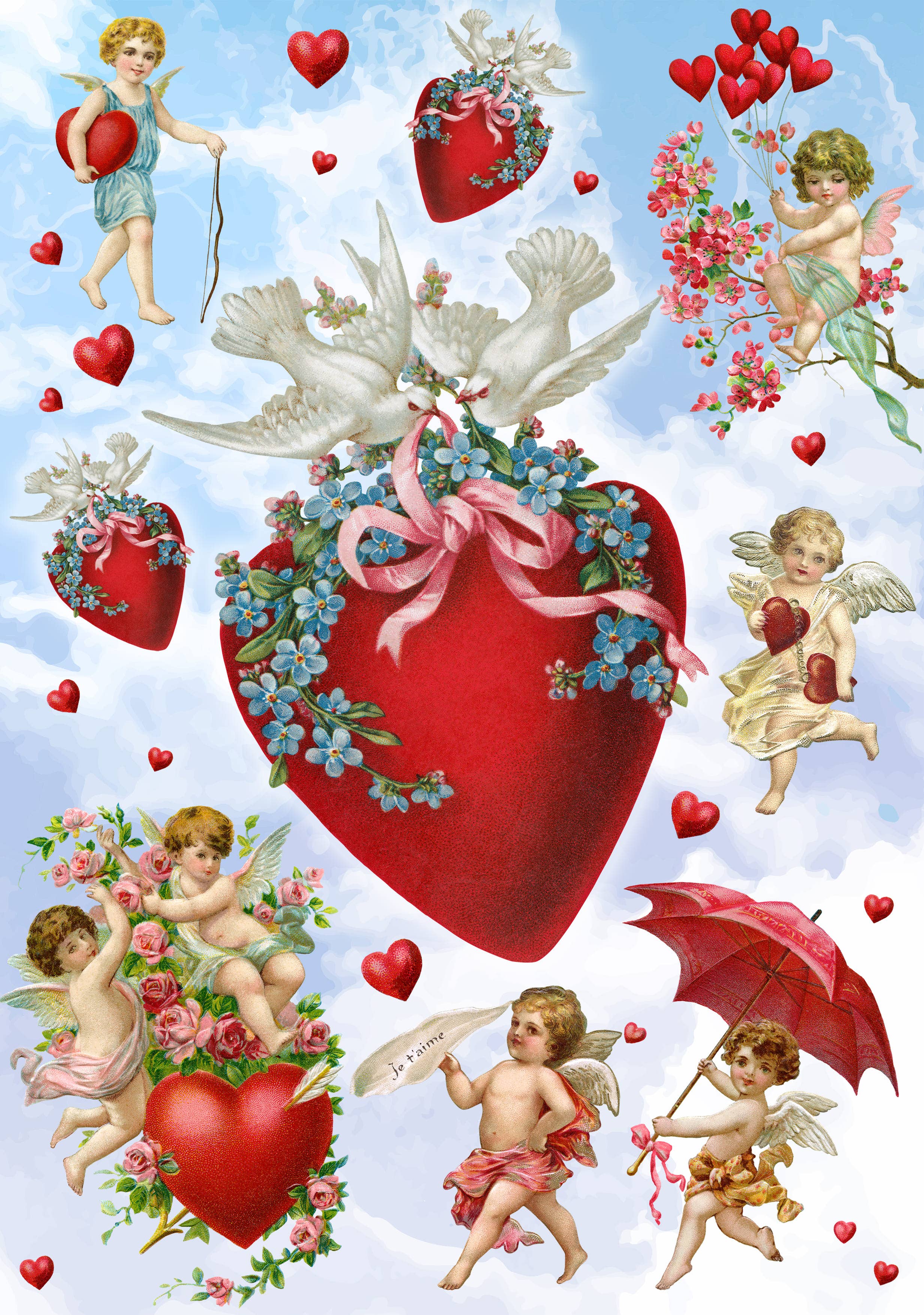 Valentinsdag rispapir til Decoupage Denne fantastiske samling af rispapir er designet af europæisk kunstner og trykt i Italien på håndlavet papir. Vi garanterer den højeste kvalitet af papir og udskrifter. Se vores butik for forskellige rispapirtemaer. Størrelse: A $8.3 „x 11.7" Vægt: 30g/m2