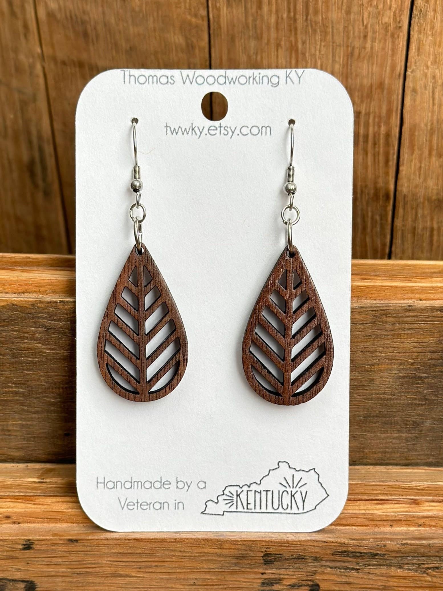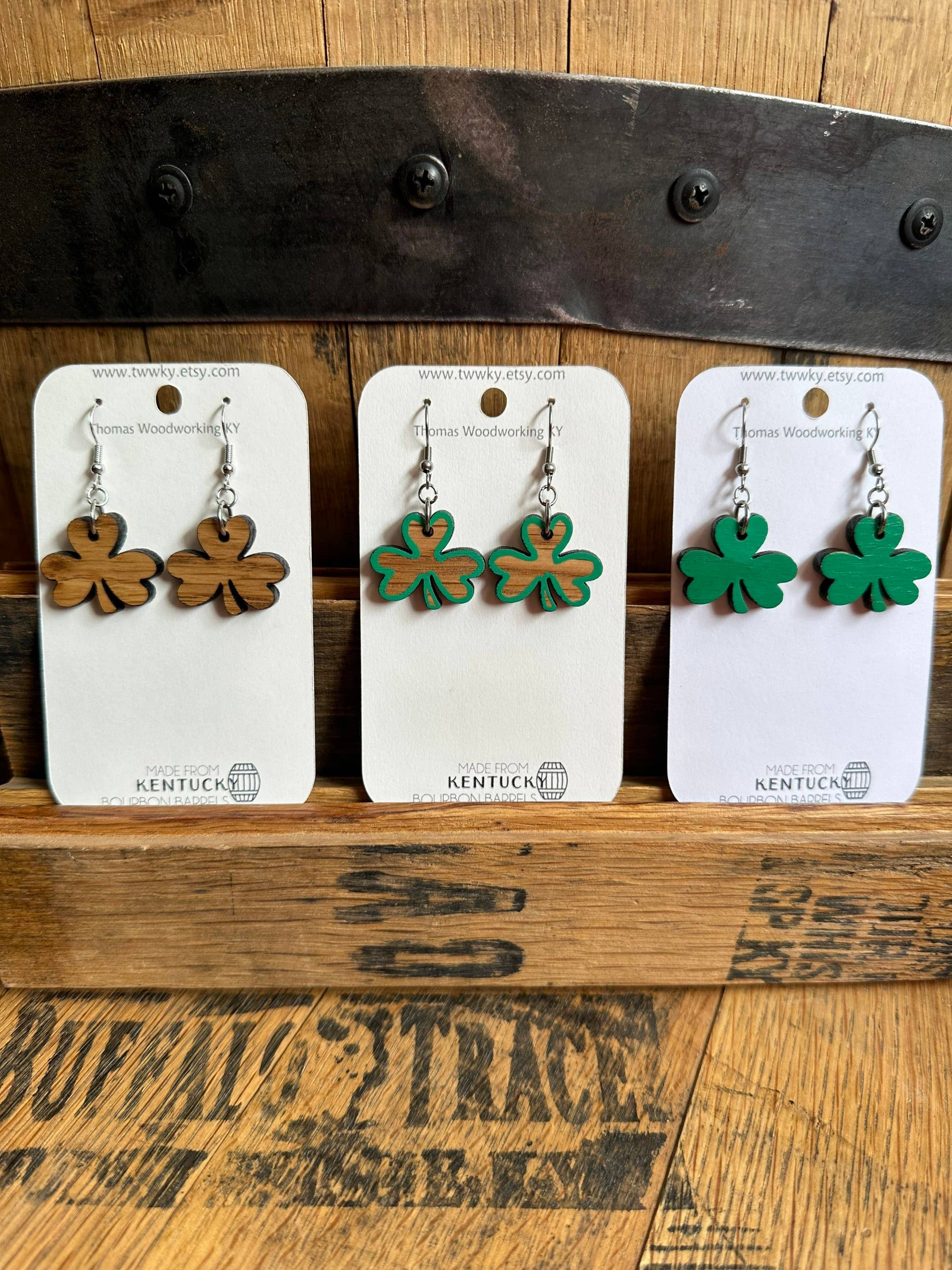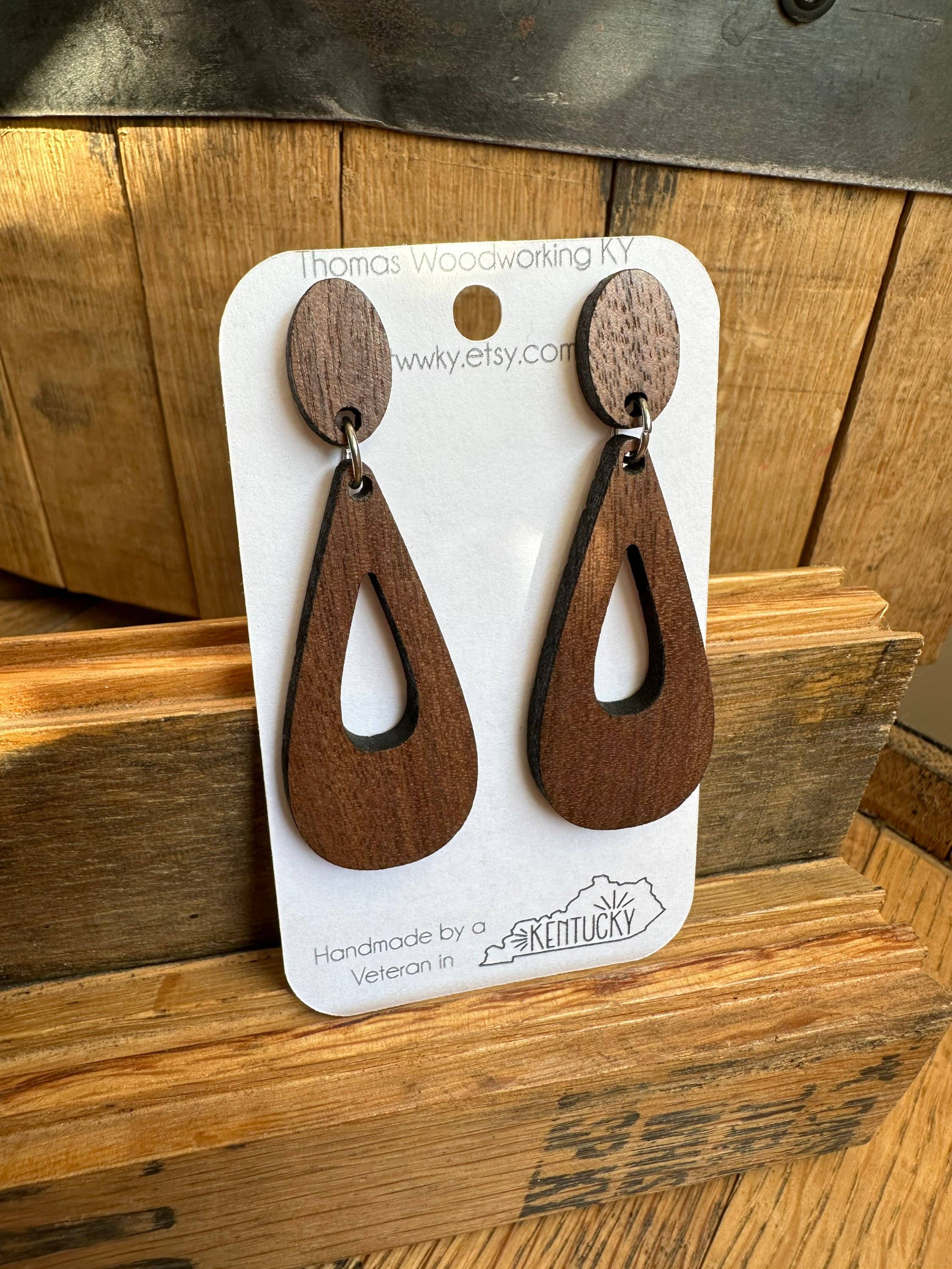 Juletræsøreringe lavet af genvundne Kentucky Bourbon -tønder. Feriegaver til hende. Bourbon Whisky gaver. Begynder med en unik idé Vi fremstiller vores øreringe af 100% genvundne Kentucky Bourbon Barrels. Lasergraveret ved hjælp af den nuværende teknologi fremstiller vi omhyggeligt hvert par øreringe for at gøre dem hver til deres egne. Vi tilføjer prikken over i'et af allergivenlige bagsider i rustfrit stål med håndlavet pleje. Vi ønsker, at vores kunder skal være tilfredse med deres produkter, mens de leverer disse stykker til en overkommelig pris. Vores juletræ øreringe er perfekte til dem, der elsker feriesæsonen! Meget let og trækker ikke ørerne ned. En sjov måde at fejre jul på, mens du tilføjer Kentucky Bourbon-stil, vi ved, at du vil elske disse unikke øreringe. **Bemærk, at alt trækornets udseende varierer** Dråbelængden er 2,25“ og 1/8“ tyk. Materiale: Træ