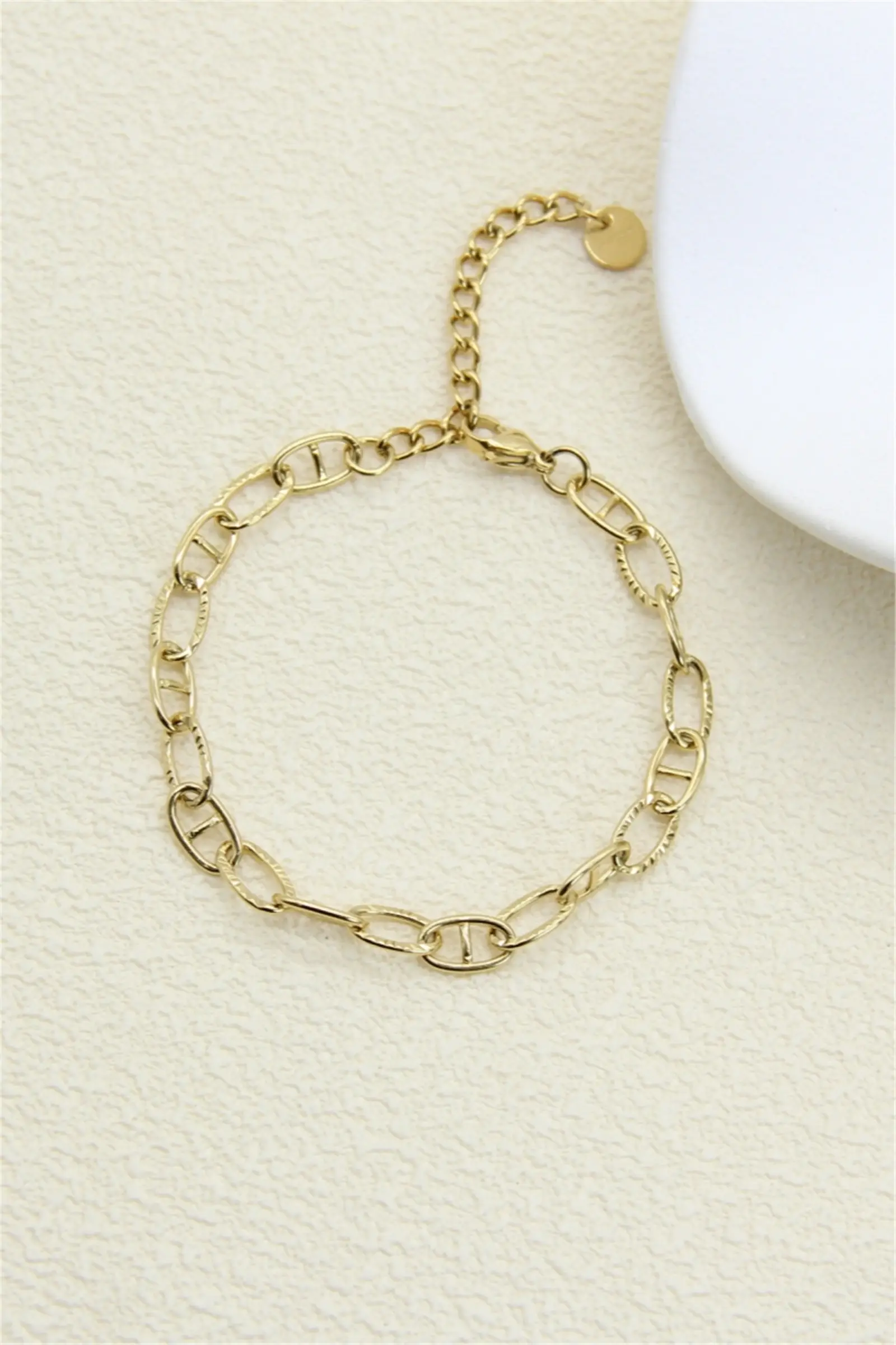 Fint armbånd i rustfrit stål med marine-lignende kæder og rhinsten