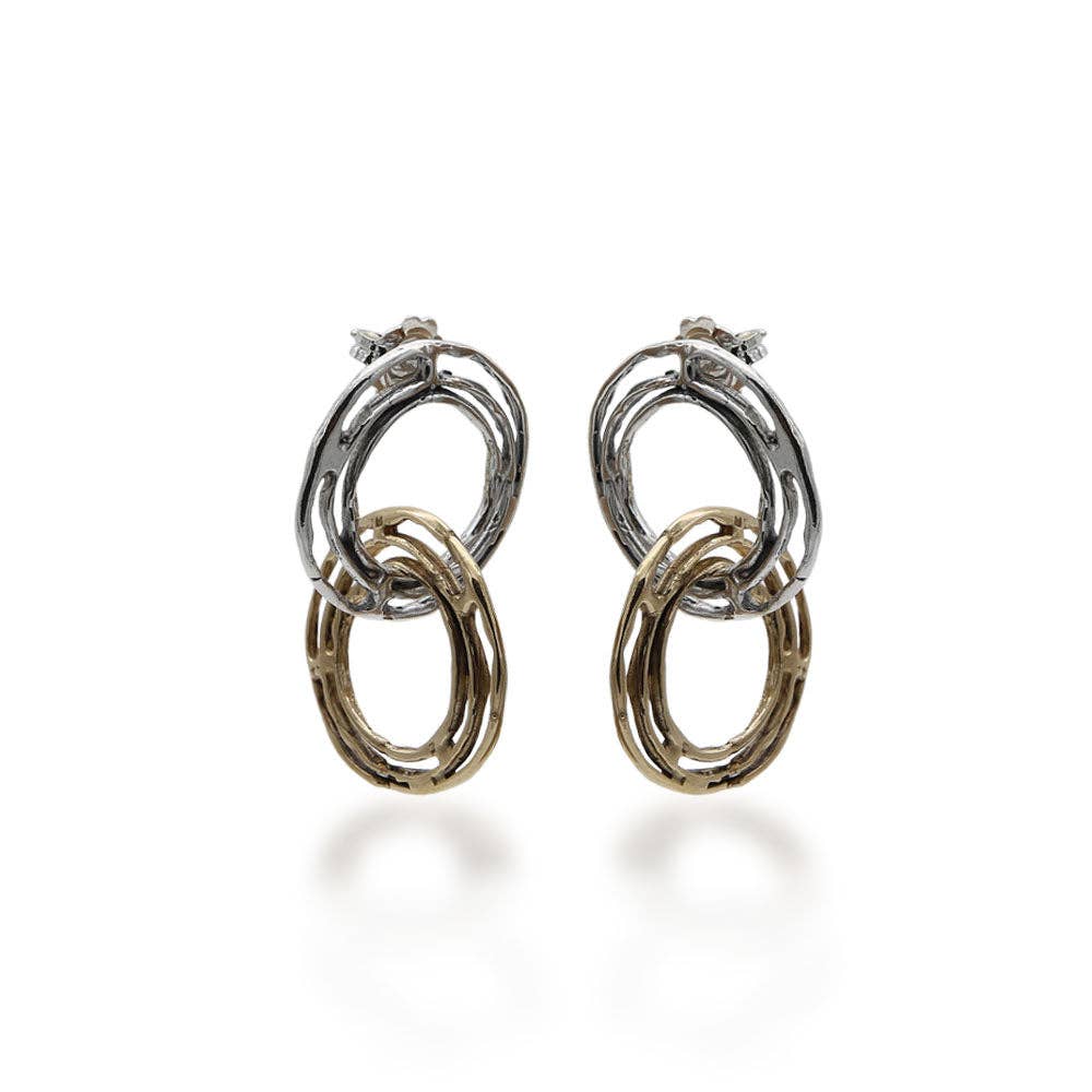 Sølv- og bronzetråde udgør designet af de to stiliserede spiraler, der udgør vedhængøreringene, som er fastgjort til loben med stiften og sommerfugllåsen. Et unikt og originalt design, et strejf af stil, der fanger lyset og forbedrer ansigtets ovale. Håndlavet i Italien.