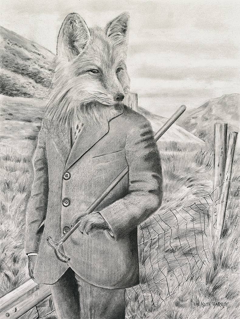 Postkort: #44 - Country Fox. Blyanttegning, dyrekunst