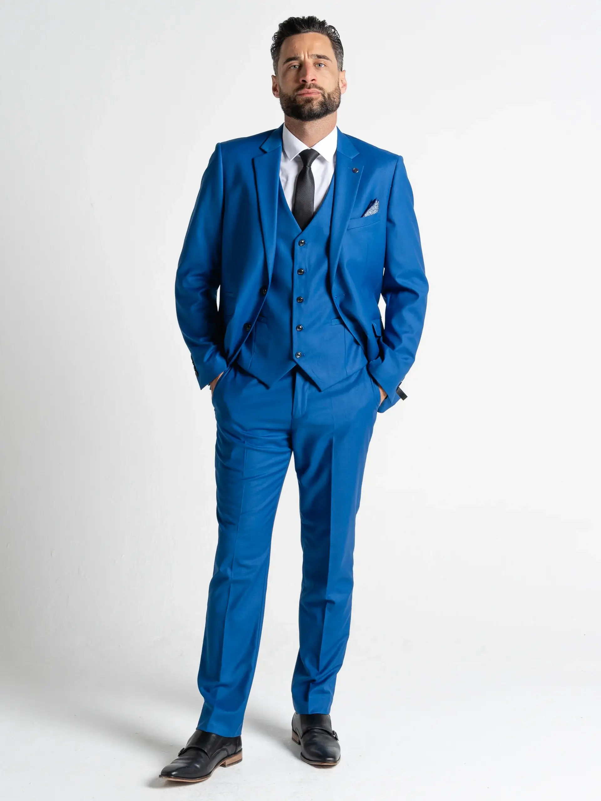 Chelsea - Tredelt jakkesæt med blomme med blå nålestripe