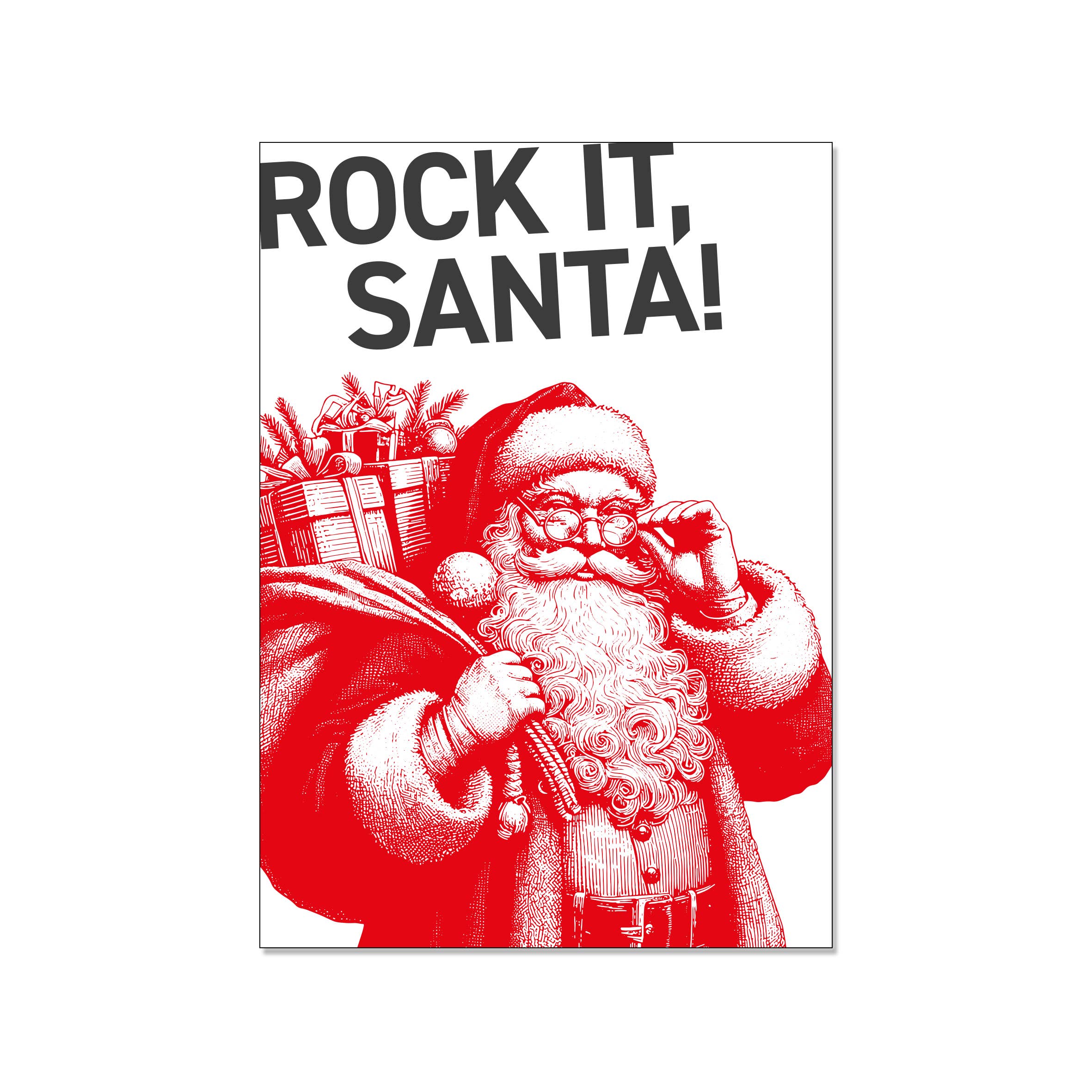 Viskestykke hvid, Go Santa Go - Håndtrykt i Hamborg / Serigrafi - Materiale: 100% bomuld - Vaskbar ved 60 grader - Mål ca. 50 x 70 cm - Pakket ind i en banderole