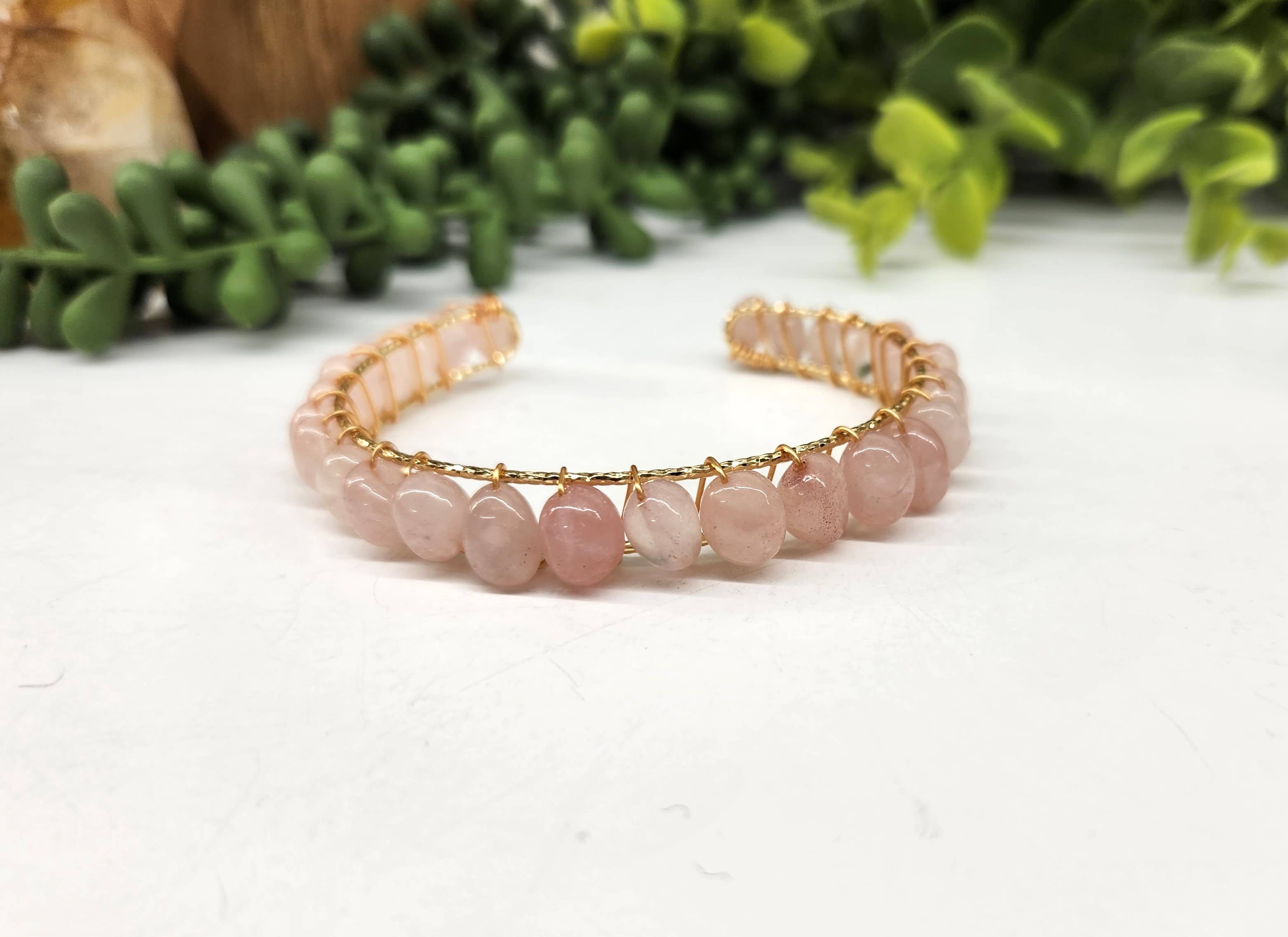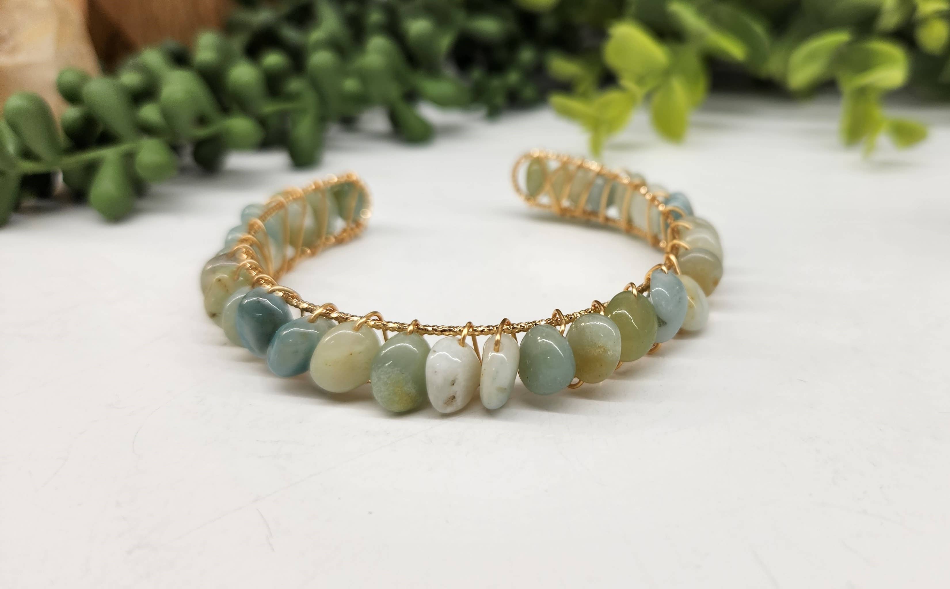 Klare kvartsperler indpakket for at danne denne smukke armbånd/manchet/armbånd. *Fås i 18kt. Gult guld overlay-hvid og gul guld *Alle naturlige halvædelsten. * Fleksibel og passer godt på de fleste håndled. Dette billede er en repræsentation af typen og kvaliteten af den ædelsten, du modtager. Som du ved, er der små variationer på grund af den naturlige karakter af dette produkt.