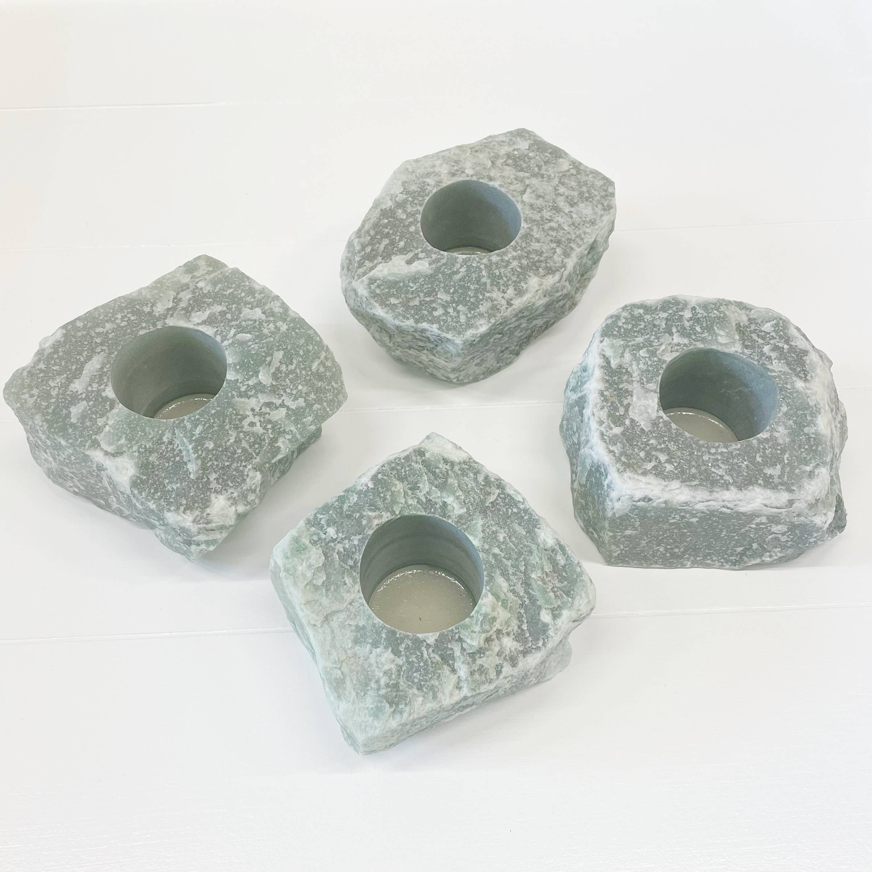 Råt rosenkvarts fyrfadsstager, sæt med 2 stk.