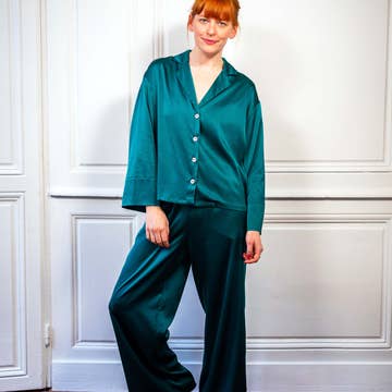 Den klassiske og elegante bomuld og silke pyjamas Fall for Camilles grå bomulds- og silkepyjamas, til dine søde nætter eller til kokon derhjemme. Dens klassiske form med bordeauxkant og patchlommer er velegnet til alle kropstyper. Din pyjamas kommer i en matchende pose.
