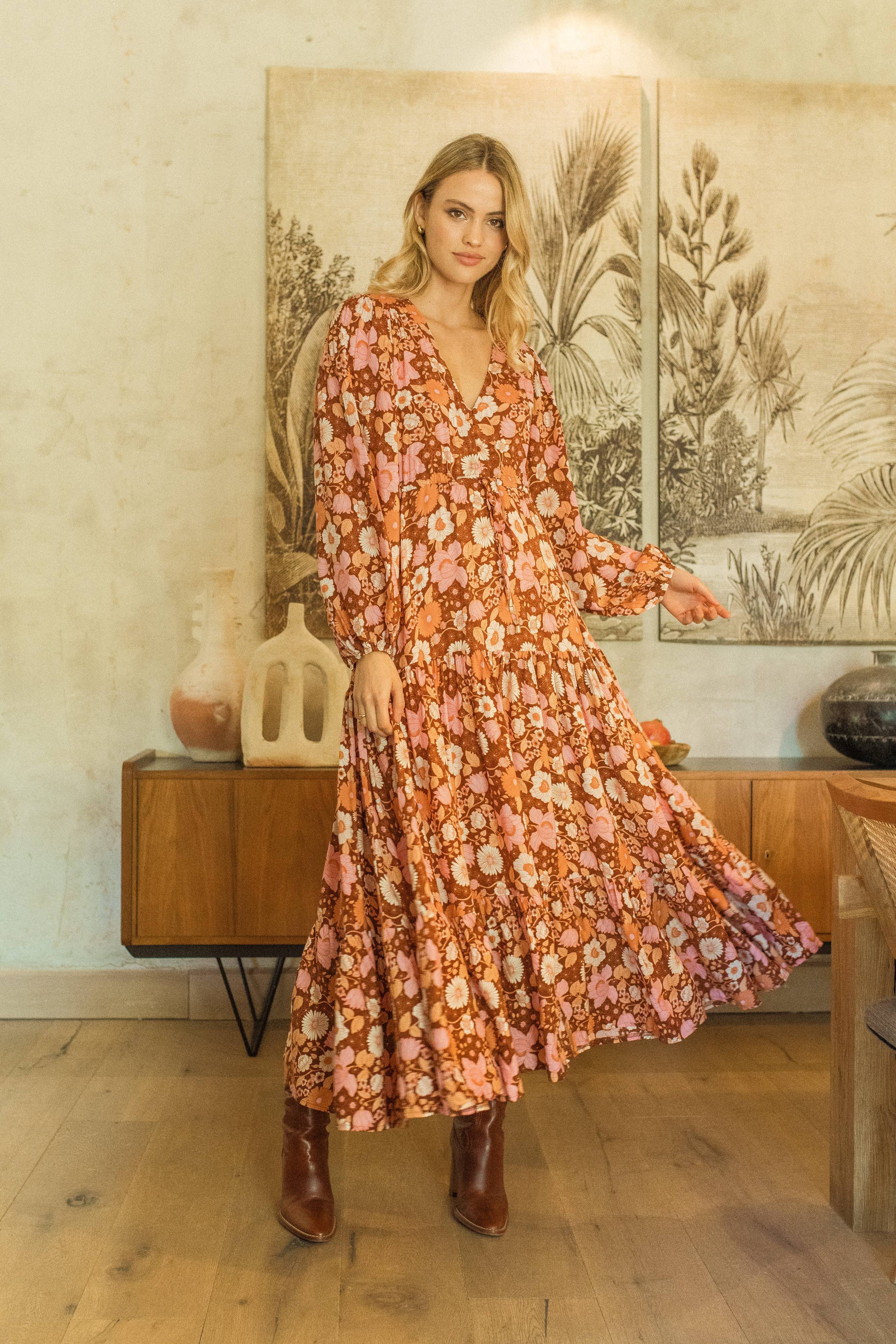 Ærmeløs flæsekjole i lag med lommer