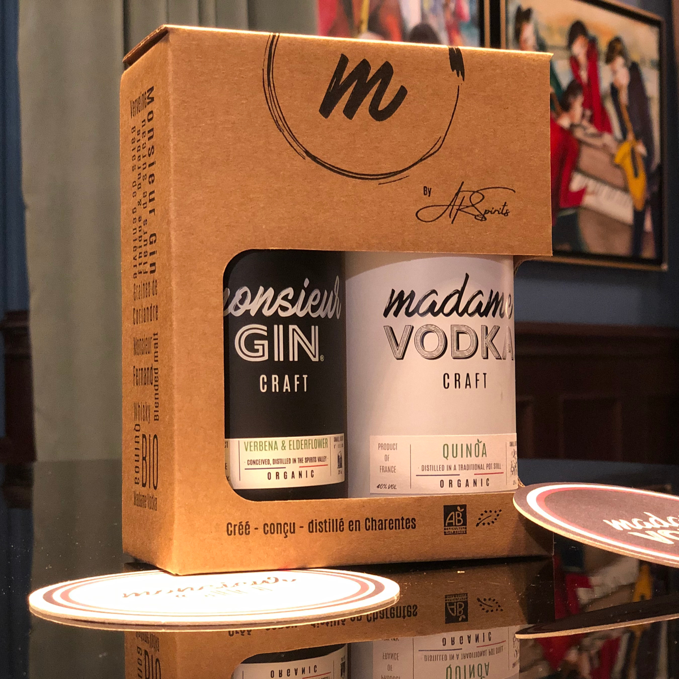 Vodka lavet på økologiske korn (destilleret i en kolonnedestillator) og fortyndet med rent kildevand fra Gensac-la-Pallue (Charente). Delikat og blomsteragtig duft. En blød, rund og citronagtig smag.