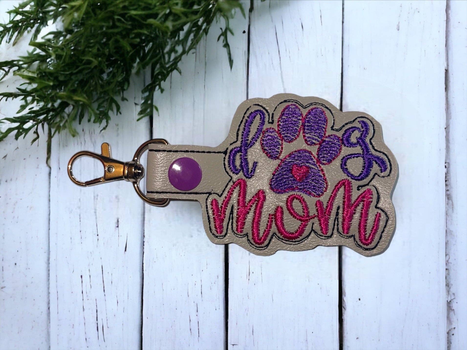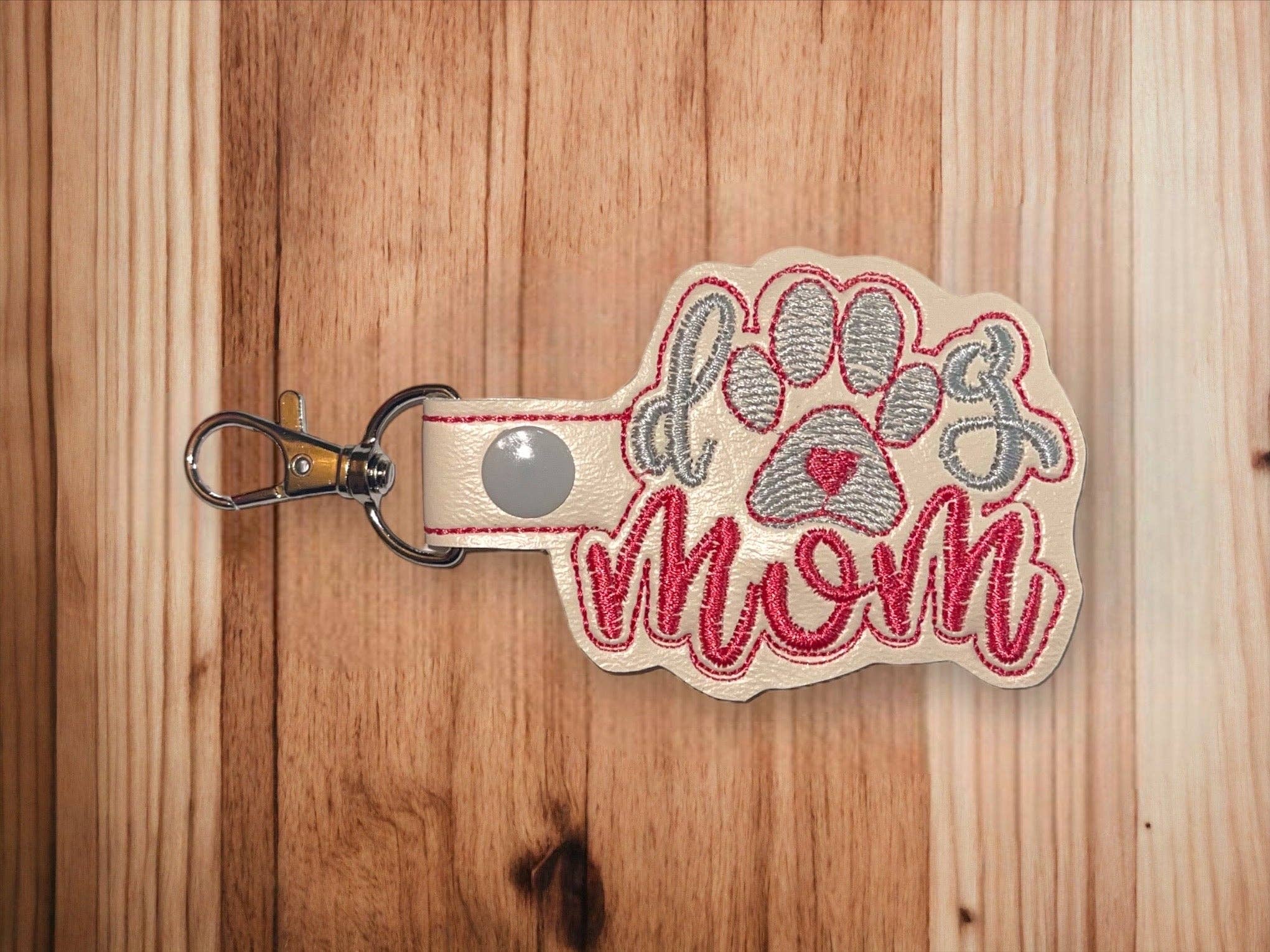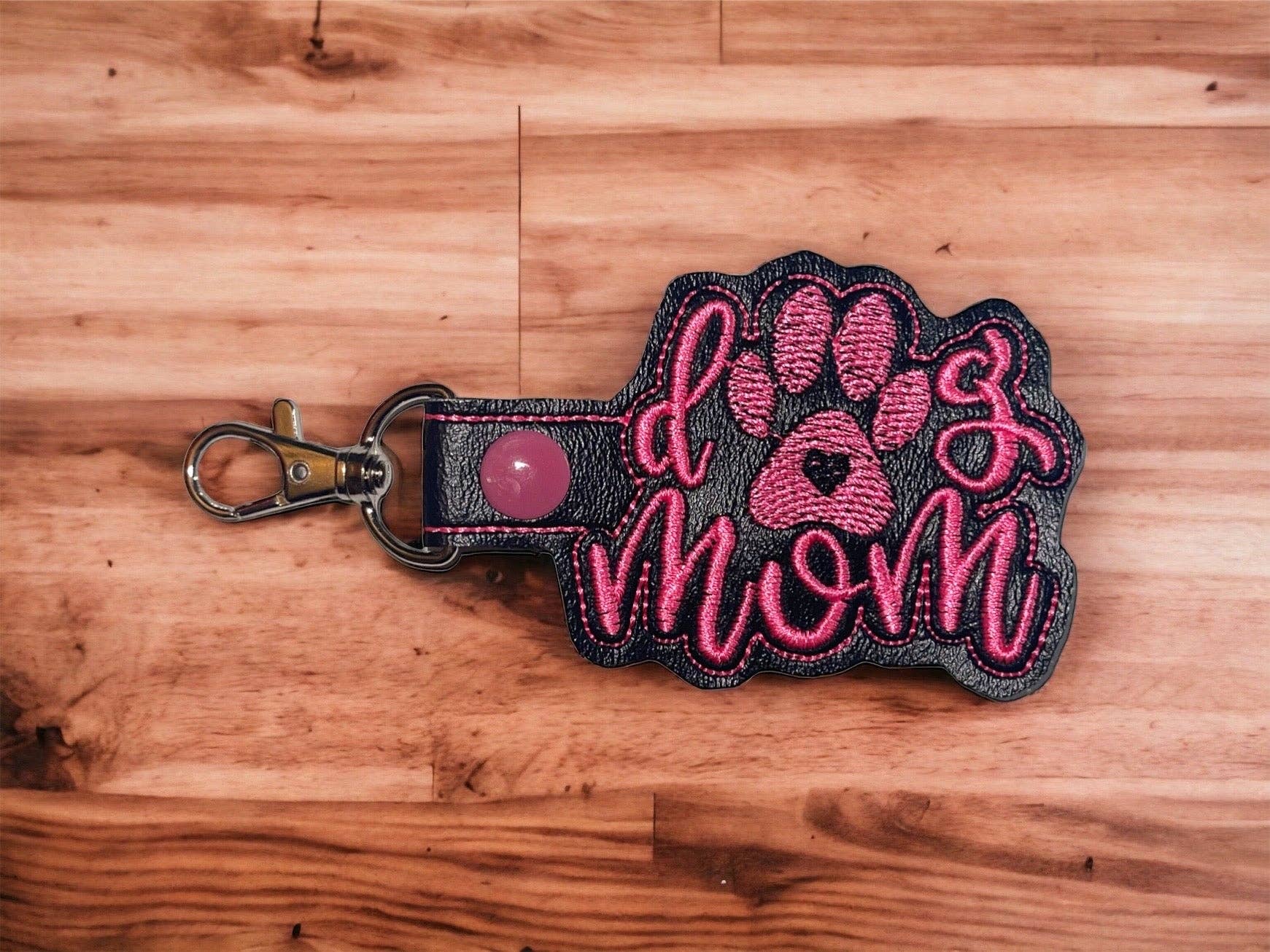 Vis din kærlighed til lodne familiemedlemmer med „Dog Mom“ nøglering! Denne smukt broderede nøglering er den perfekte måde at vise verden den kærlighed, du har til din pelsbaby. Lad alle vide, at du er en „hundemor“!