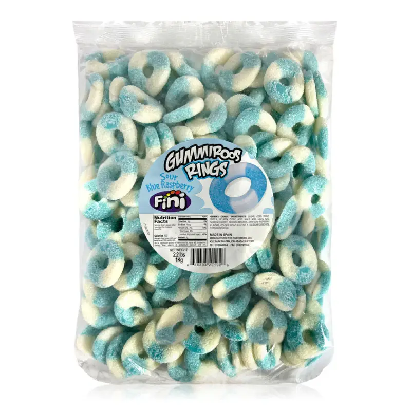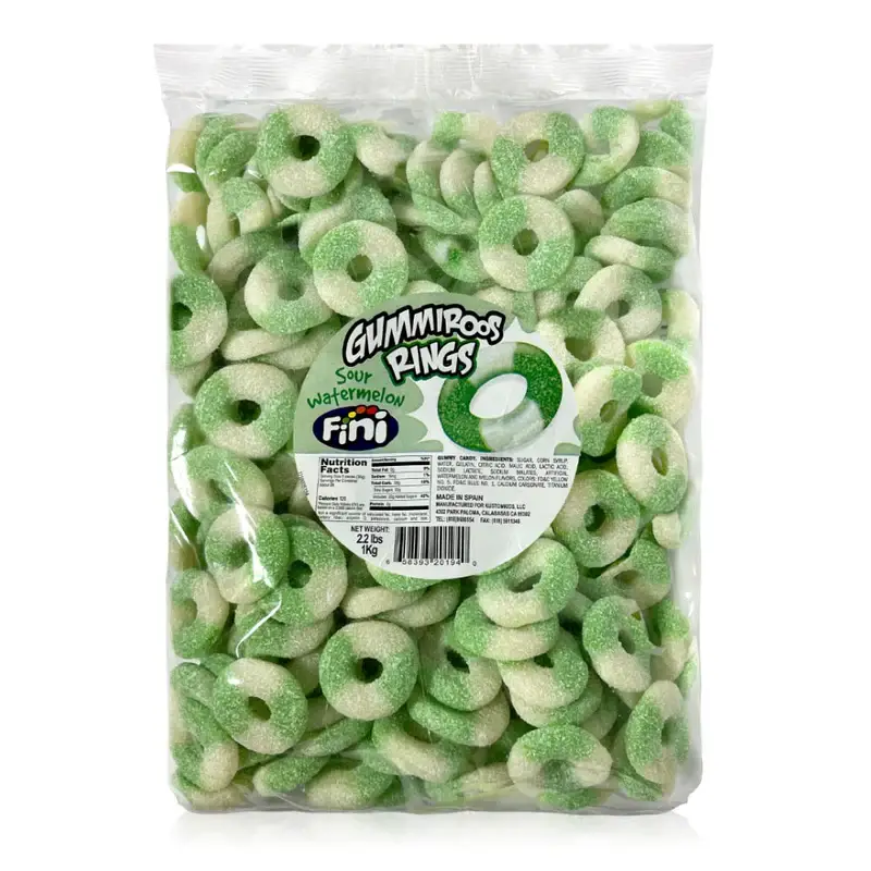 Form og størrelse: Gummiringe er cirkulære i form, der ligner miniature ringe eller donuts. De findes i forskellige størrelser, men de er generelt små og mundrette. Tekstur: Teksturen af gummiringe er blød, sej og gummiagtig. Det giver en tilfredsstillende og fornøjelig spiseoplevelse. Farver: Disse slik er ofte i klare farver, hvor hver farve svarer til en specifik frugtsmag. De levende nuancer øger slikets visuelle appel. Populær blandt alle aldre: Gummiringe er populære blandt både børn og voksne. Den legende ringform og de frugtige smage gør dem til en fornøjelig godbid. Gummiringe er et alsidigt og elsket slik, ofte nydt som en selvstændig godbid eller brugt kreativt i forskellige kulinariske anvendelser.