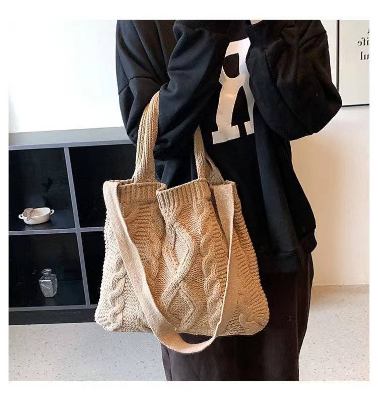 Hæklet Netpose Leopard Print Strikket Taske