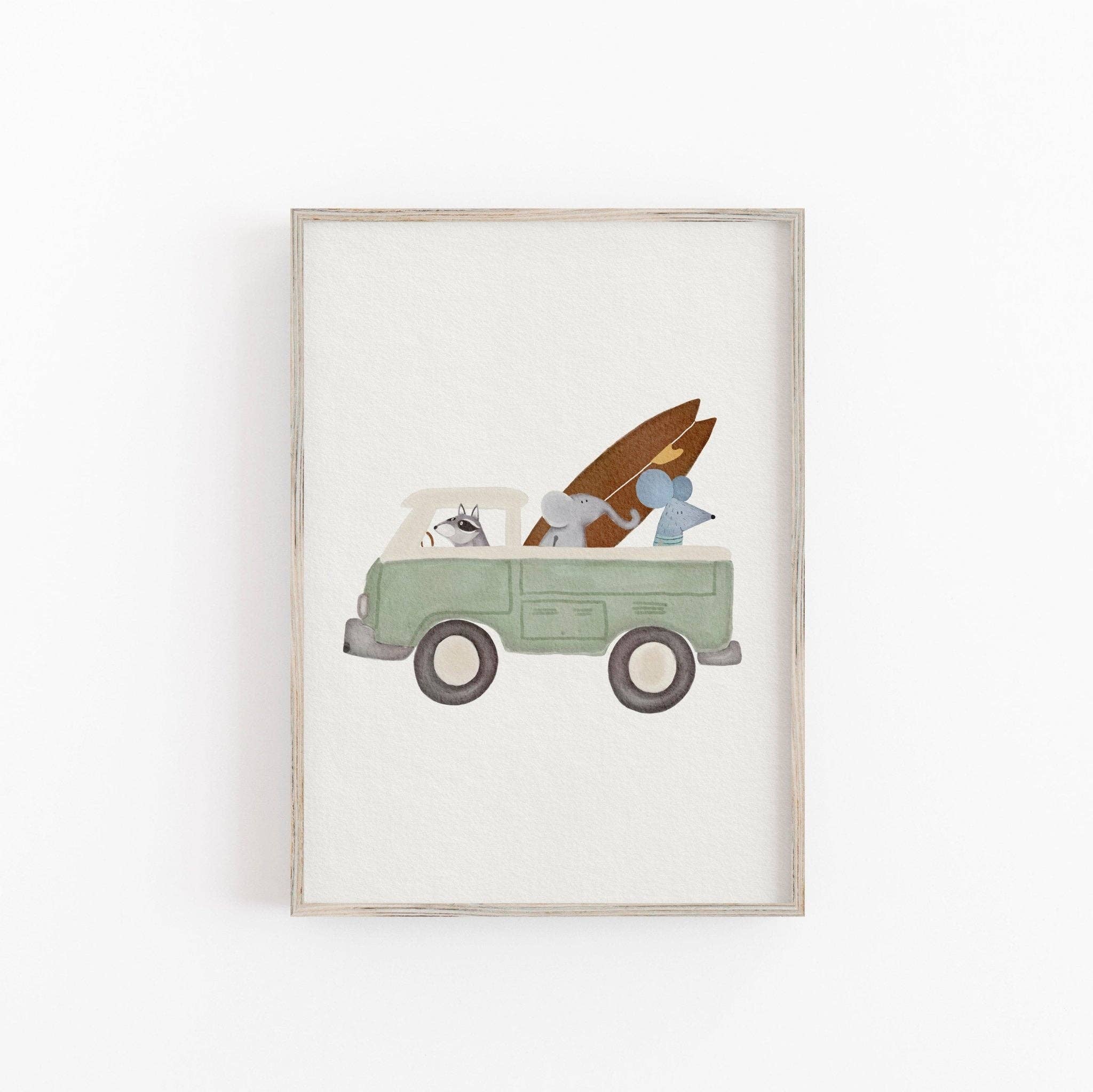 Surf VW Campervan Nat Himmel Print, Surf Vægkunst