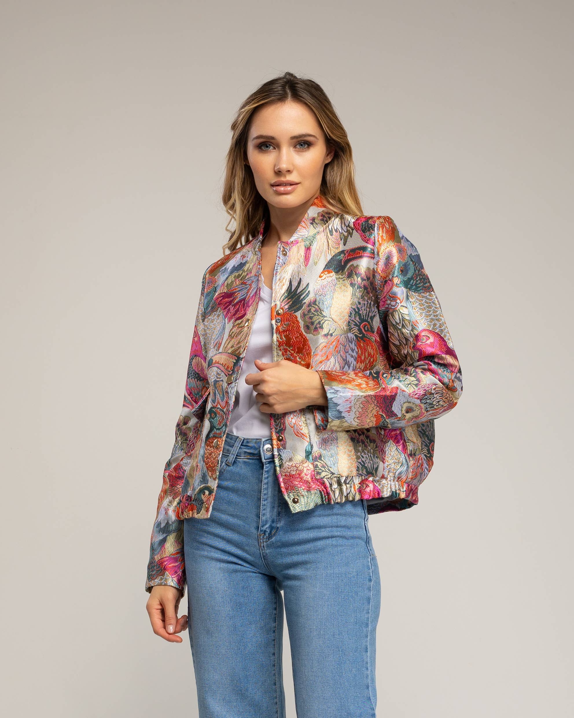 Dette er en stilfuld og funktionel jakke i utility-stil, fremstillet af et blødt, imiteret ruskind, der giver den et rigt, taktilt udseende. Den har en karakteristisk mørkebrun kontrastkrave i et lignende ruskindslignende materiale, der tilføjer et klassisk, rustikt præg til designet. Jakken er designet med et praktisk dobbeltlukningssystem, der inkluderer en fuld lynlås foran og en overliggende stormklap, der sikres med koordinerende antikke messingtrykknapper for ekstra beskyttelse og stil. To store, funktionelle påsyede lommer med trykknapflapper pryder fronten, hvilket forbedrer det utilitaristiske udseende, samtidig med at de giver rigelig opbevaringsplads. Jakken har en afslappet, let boxy silhuet, der går til hoften, med lange ærmer afsluttet med justerbare trykknapmanchetter. Stylet på billedet med denim og en koordinerende brun hat, skaber den et smart og afslappet look, der er perfekt til efteråret. -Modellen er 5'9" og bærer en Small