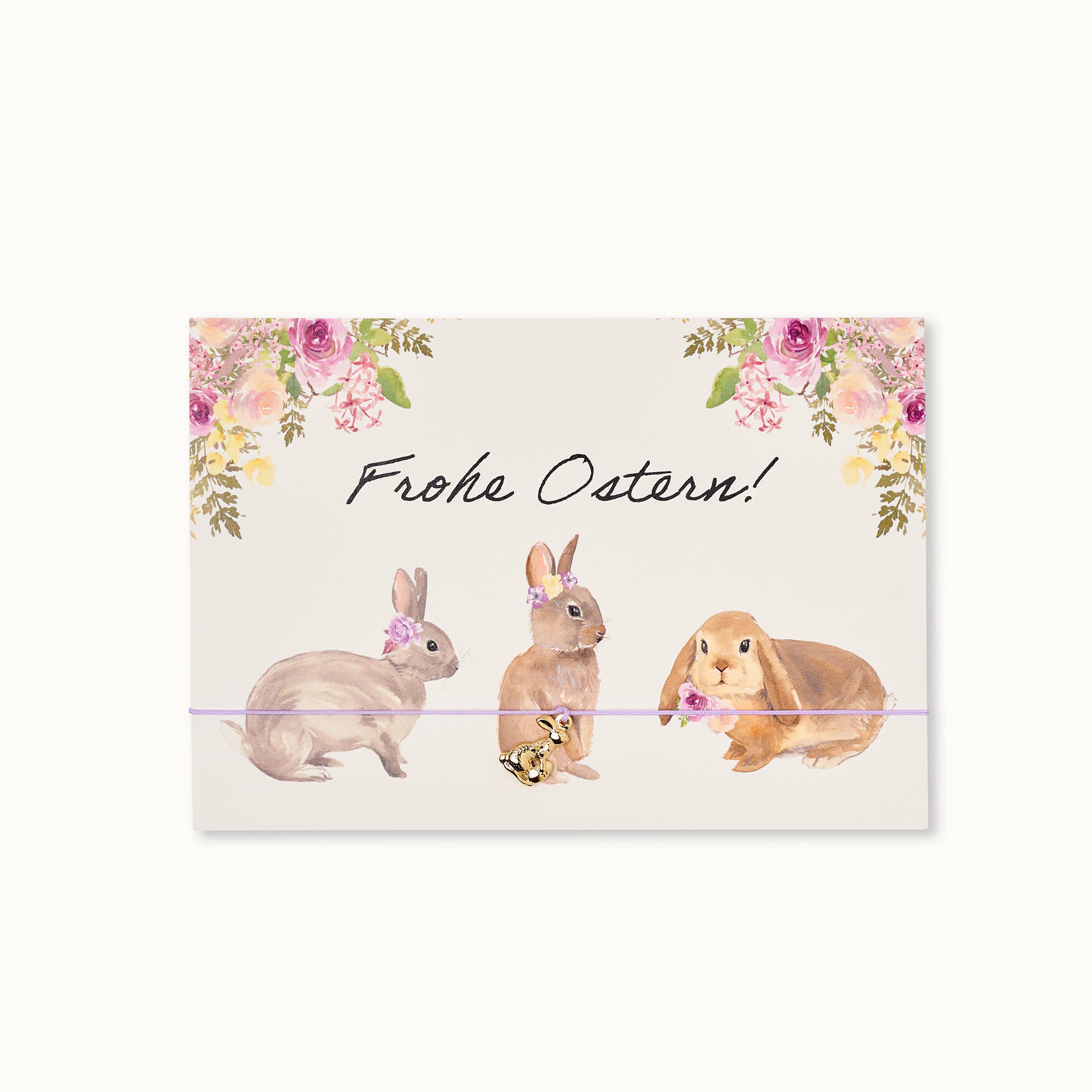 Vi er sikre på, at I er enige med os, når vi siger: Disse søde bambier er uimodståelige! Dette kort er så fortryllende, at man simpelthen må give det med de bedste ønsker til de vigtigste mennesker i livet. Kort med et armbånd og en bambi-vedhæng, 18 karat forgyldt, på et lilla armbånd. Designet og samlet med kærlighed i München. Tekst: "Glædelig påske!" Kort: 300g/m2 | Format: 11x16cm Kuvert: Hvid transparent | 90g/m2 | Format: Din C6 | Spids klap © Design af Vivi.