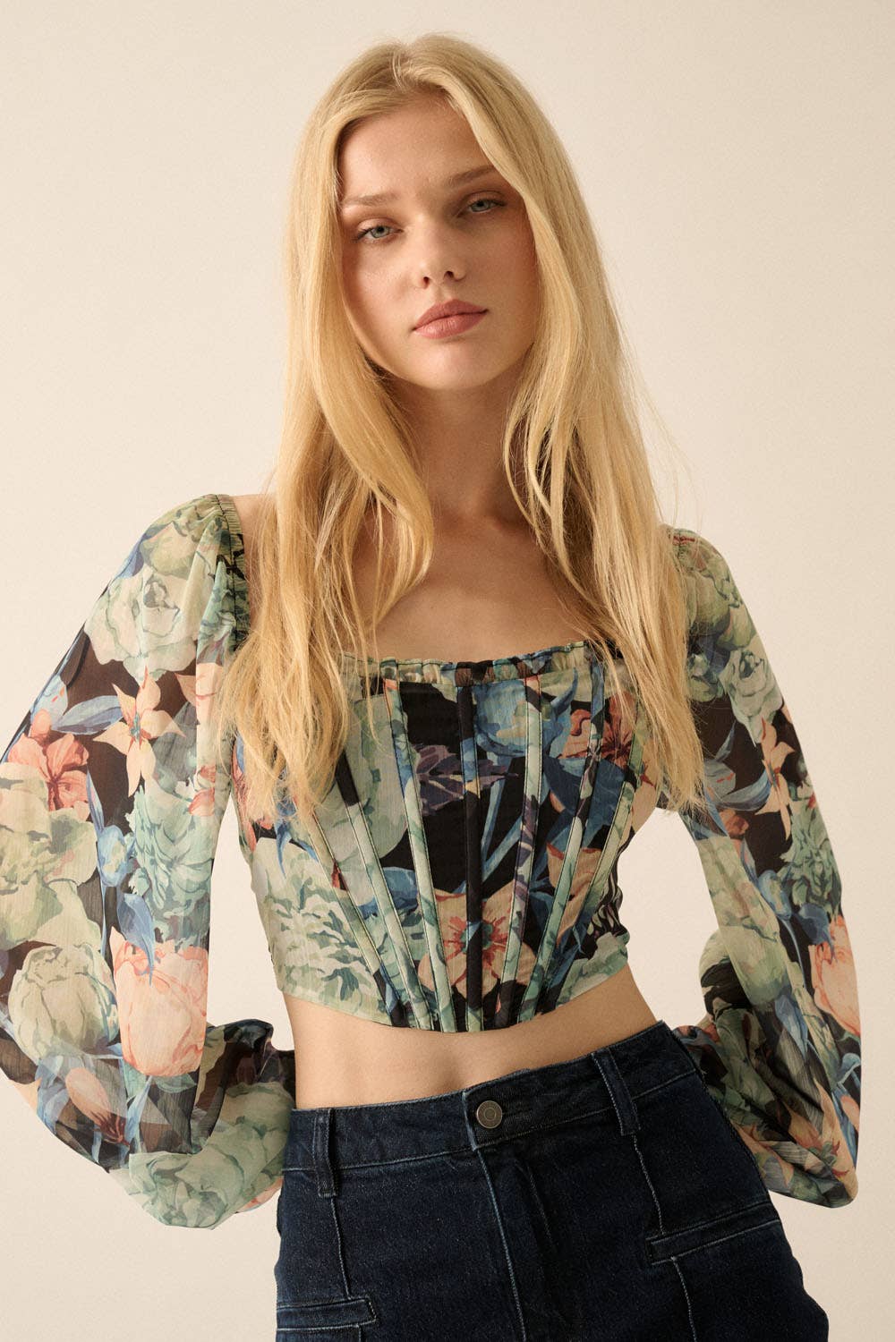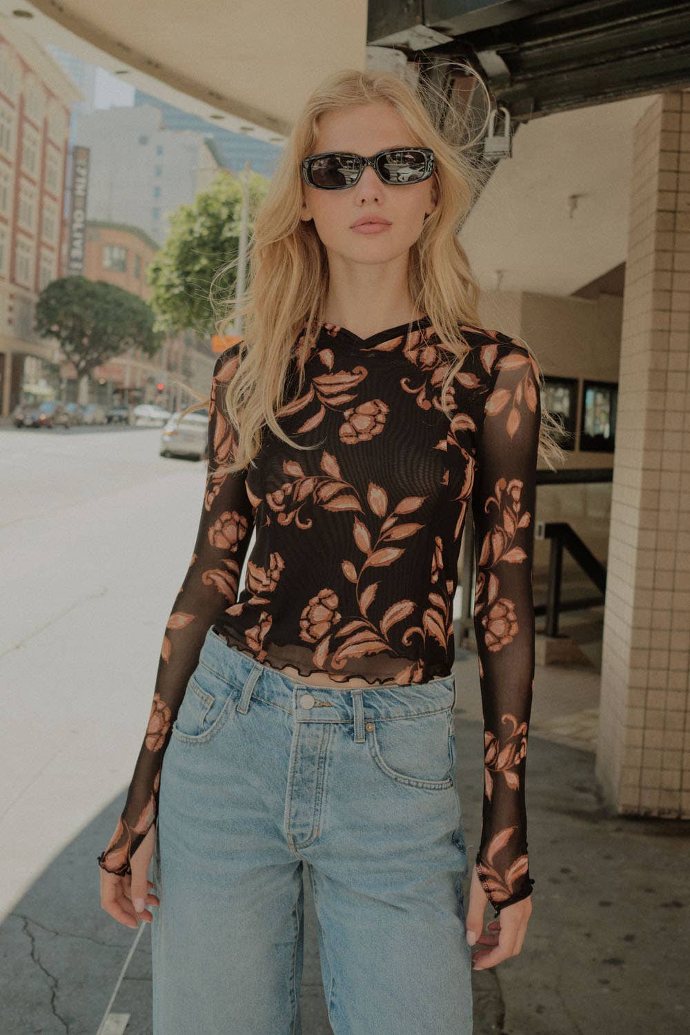 En ribstrikket top med disse egenskaber: - Dyb V-hals med knapstolpe. - Lange ærmer med brede manchetter. - Tætsiddende silhuet. Shaper Fit-modeller har førsteklasses stretchstof og en pasform, der konturer kroppen for en skulpturel effekt. Modeloplysninger: Højde: 178 cm | Byste: 79 cm | Talje: 58 cm | Hofter: 84 cm | Bærer størrelse S.