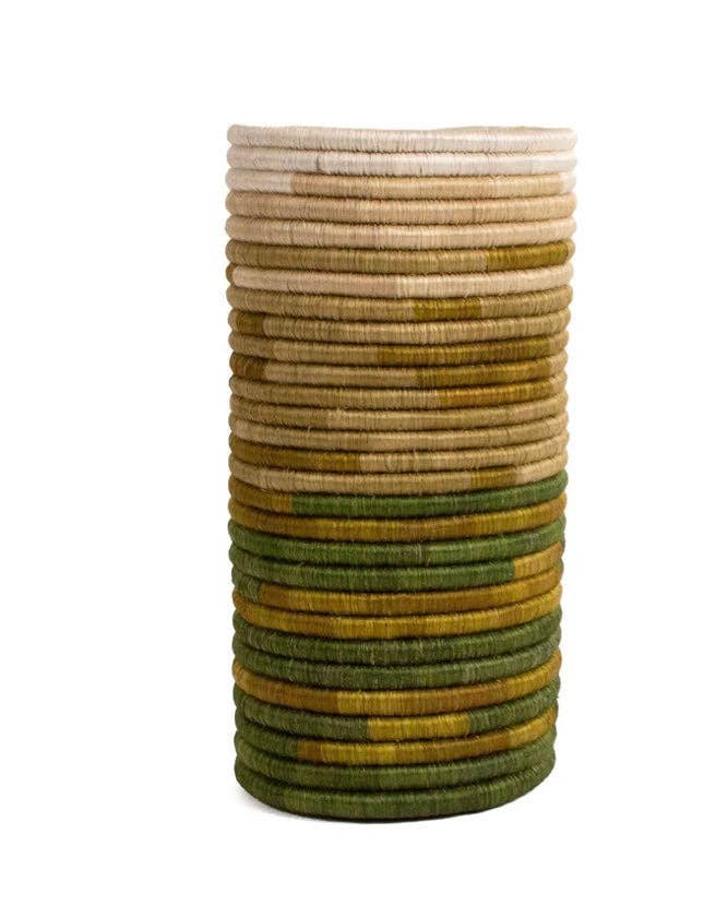 Farver varierer... Afrikansk markedskurv - Ghana Bolga - 35,6 cm i diameter. Ghana Bolga markedskurven er en fantastisk gavekurv! Ingen overraskelser – du vil modtage den samme kurv som vist på billedet. Disse kurve har en traditionel form fra Bolgatanga-regionen i det nordlige Ghana. Håndværkere i Bolgatanga-området fletter disse smukke og holdbare kurve af tyk og robust elefantgræs. Bolga-kurven er en meget populær størrelse til børn, handlende, travle mødre og picnic-planlæggere verden over. Bolga-kurve er slidstærke, praktiske, bæredygtige, forbliver funktionelle og smukke i mange år. Håndflettet i Ghana af lokalt elefantgræs.