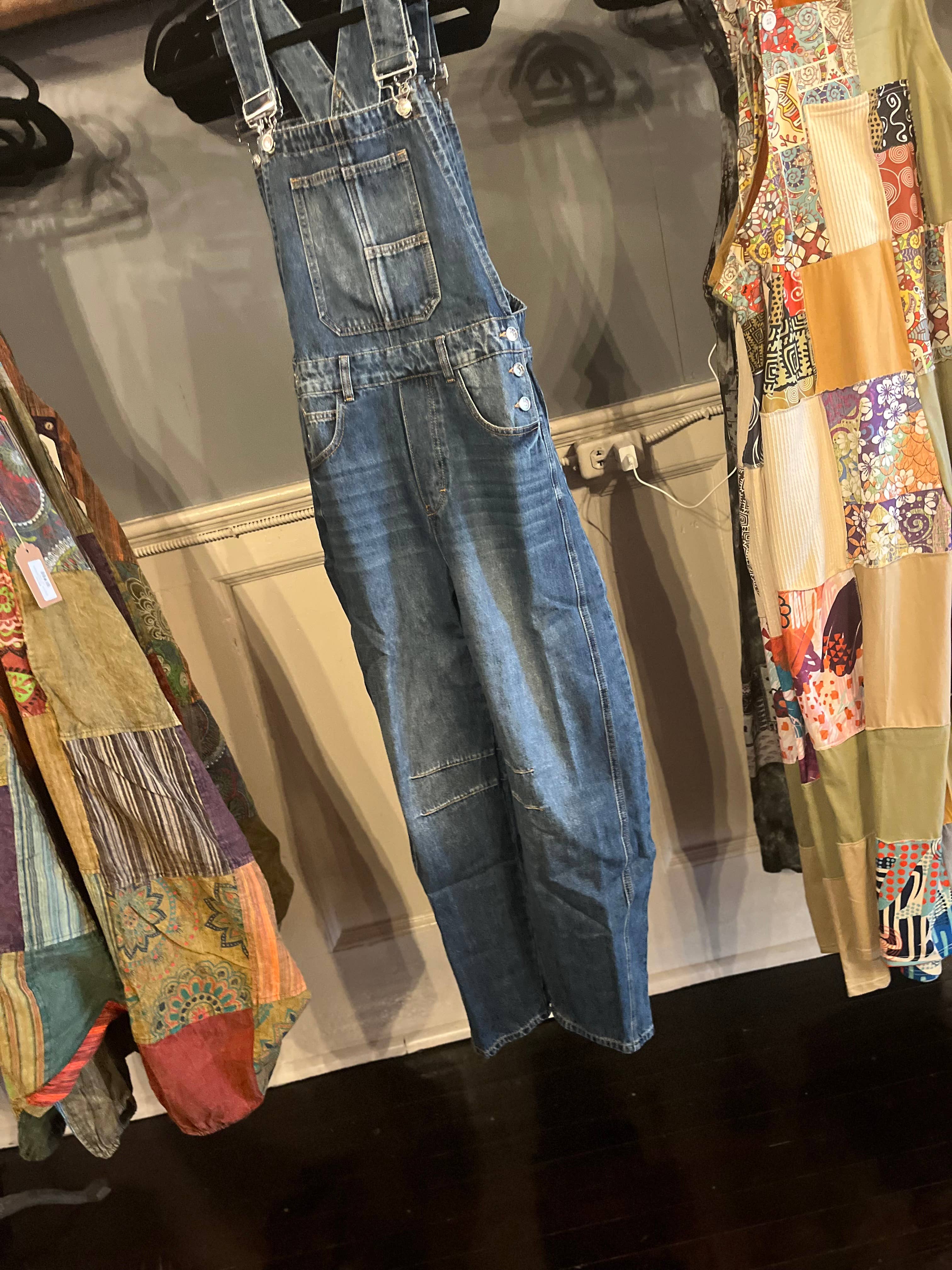 Disse denim bukselårsoveralls er en moderne fortolkning af det klassiske overalldesign med en afslappet, vid ben-silhuet, der både giver stil og komfort. Bukselårene har en karakteristisk tøndeform, som skaber et unikt og voluminøst udseende, mens de justerbare stropper og bib-forsiden bevarer det traditionelle overalludtryk. Fremstillet i robust denim for holdbarhed og hverdagsbrug. Funktionelle lommer tilføjer praktisk funktionalitet, hvilket gør dem ideelle til daglige outfits. Disse alsidige overalls kan styles med en tætsiddende top eller holdes enkle med en basic T-shirt for et afslappet, stilfuldt look. - Modellen er 175 cm høj og har størrelse Small.