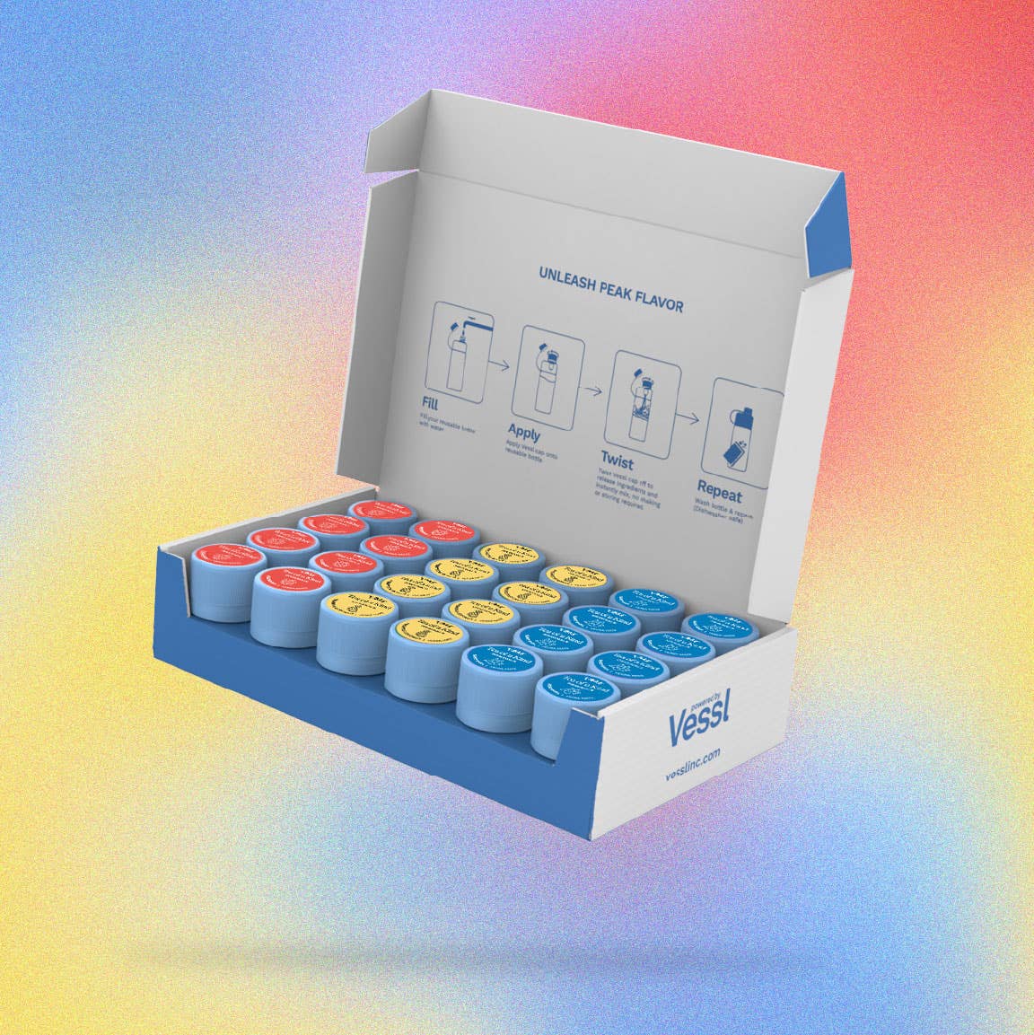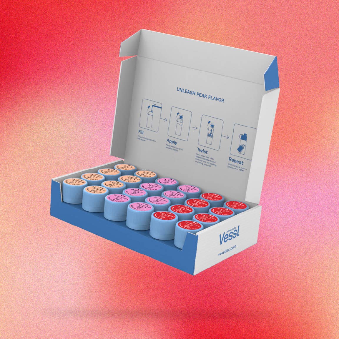 Få energi uden kompromis med TOAKs nyeste genanvendelige flaskestartsæt! Tag flere drikkevarer med dig i form af bærbare smagshætter og brændstof din energi, uanset hvor du går. Med dristige smag designet til at hydrere og give energi, indeholder vores startsæt nu 6 aromatiserede hætter sammen med et nyt genanvendeligt flaskedesign. Ikke en tedrikker? Ingen grund til at bekymre dig! Denne nye linje indeholder nye energigivende smag, og er vores første drik uden te. SPARK din energi, STRÅL dit lys, og hydrat i et BLINK! Inkluderer: • En genanvendelig flaske • 2 Spark (vandmelon) aromatiserede energihætter • 2 Flash (Fruit Punch) aromatiserede energihætter • 2 stråle (bær) aromatiserede energihætter
