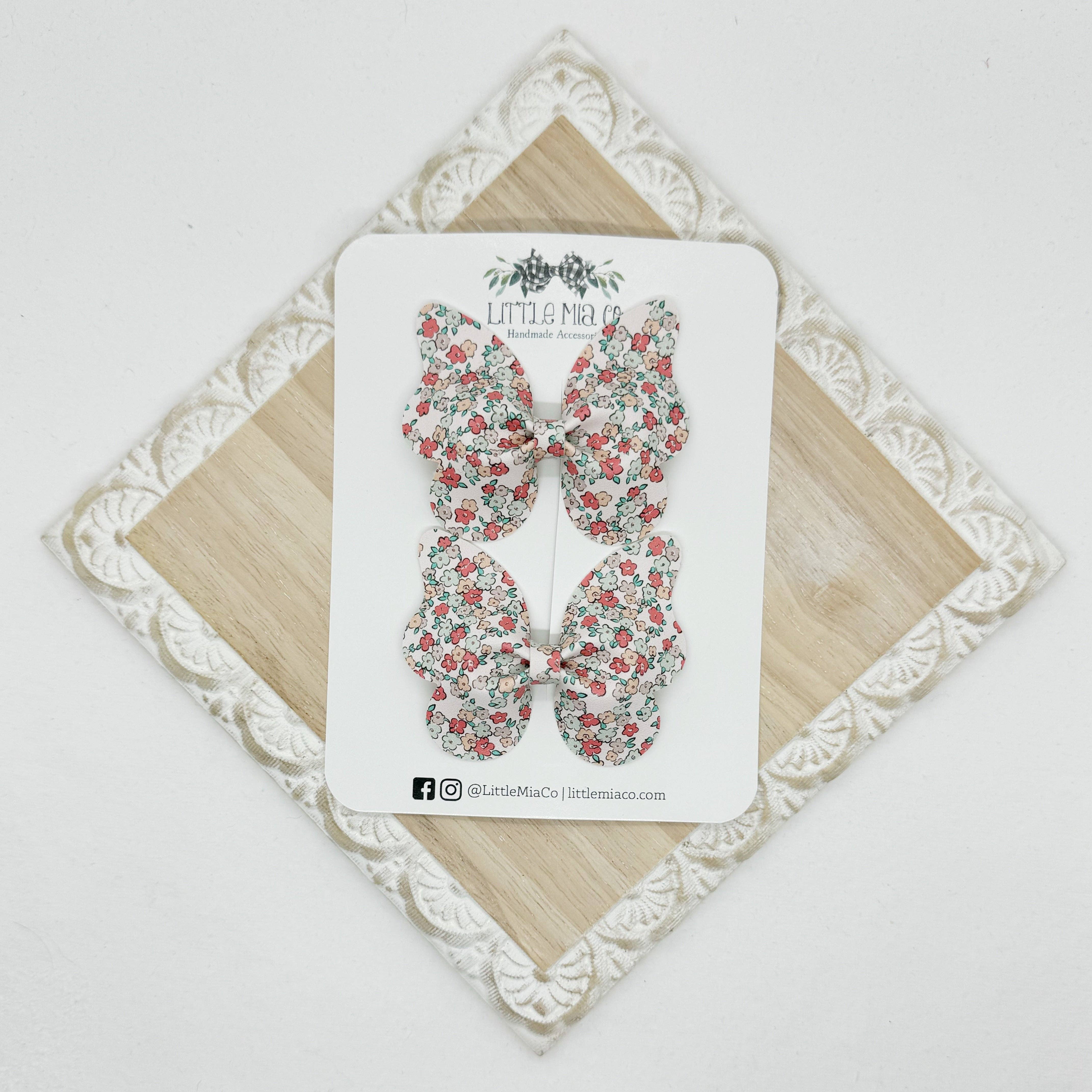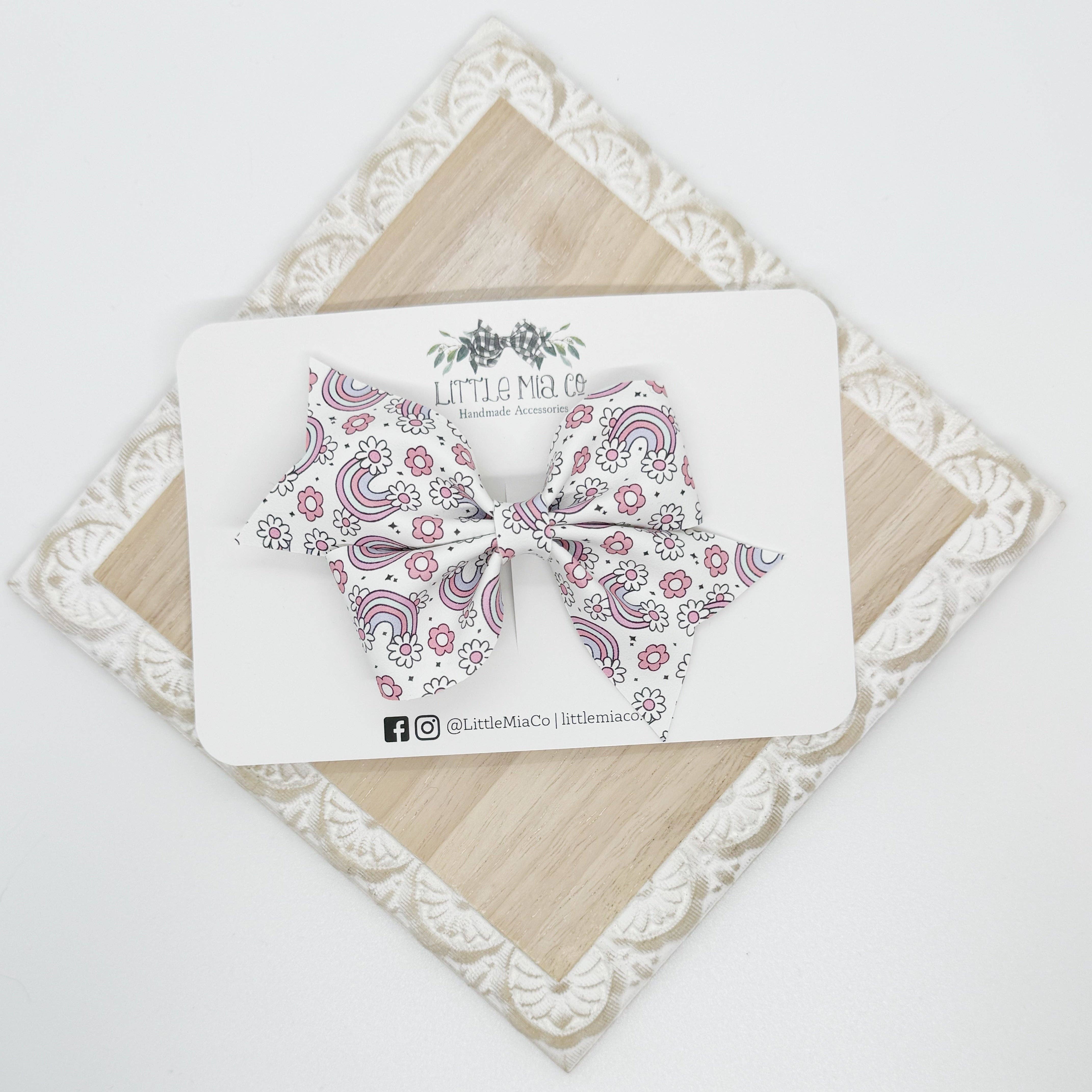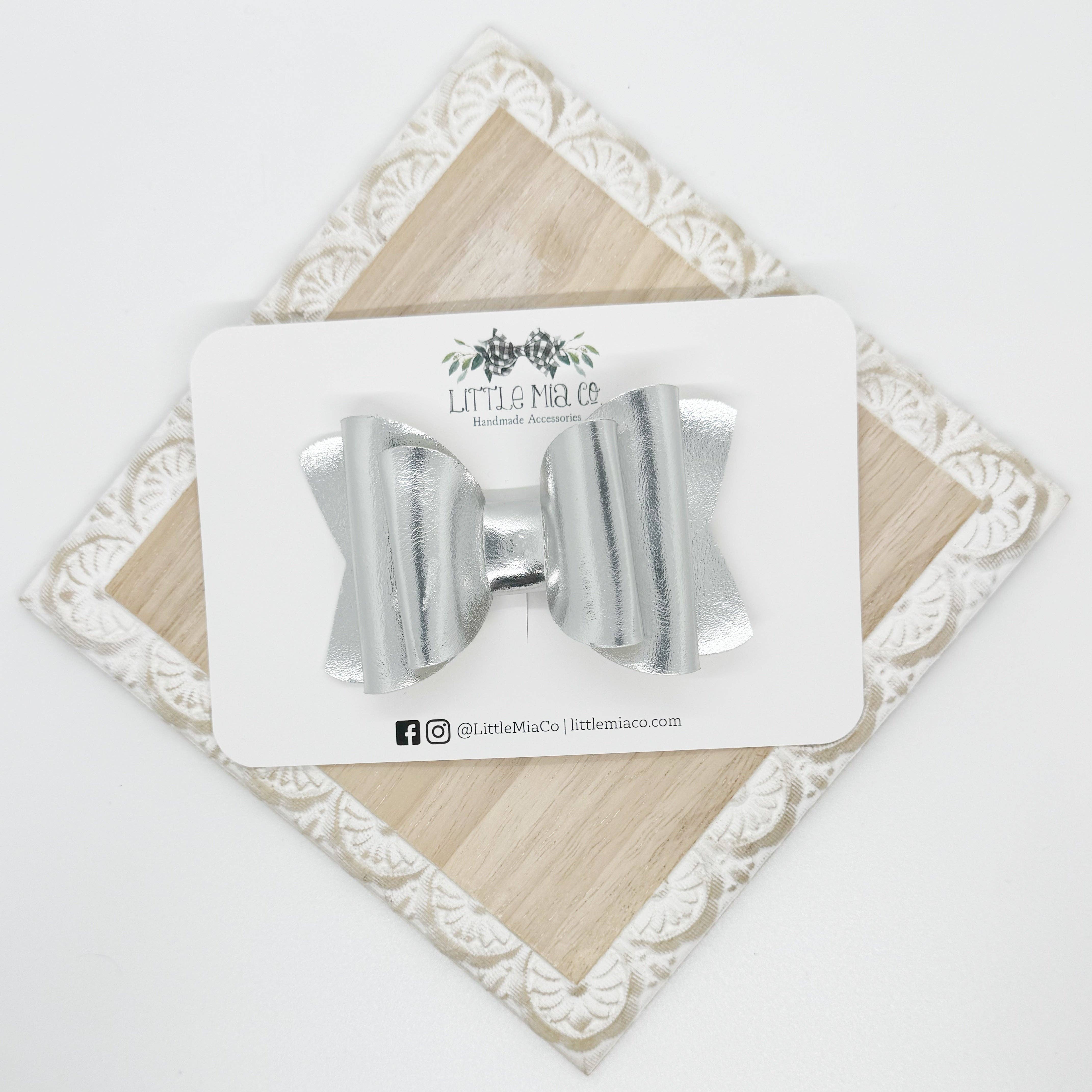We are a mama run small shop that creates bows and accessories for newborns to adults. All of our bows and accessories are handmade with faux leathers. We offer a variety of sizes, styles, colors and textures.After having two boys we were blessed with a girl and I knew accessories were going to be her thing and Little Mia Co. became a reality.
