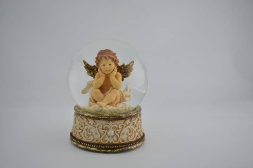 Three nostalgic snow globes from the MINIUM-Collection brand. Inside the globe is a winter landscape or a snowman in a Santa costume. Or a child with a sweet fawn. The resin base is entirely white with a nostalgic decorative strip. Fine white snow floats in the globe when shaken. You will receive 4 snow globes in this set. Material: Glass and porcelain (base) Contents: Snow Height: 60mm Width: 45mm
