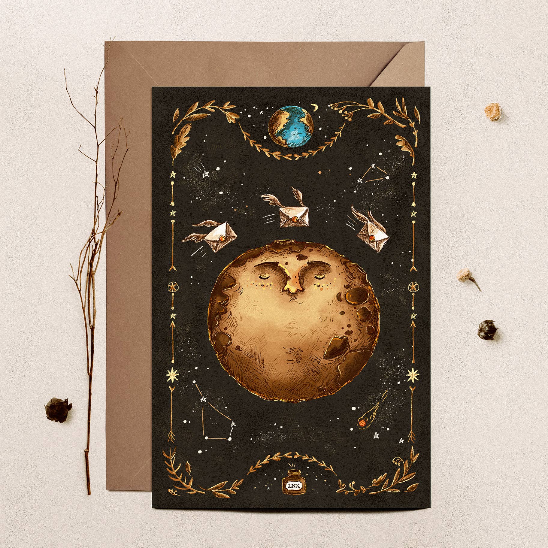"It is never too late to be what you might have been. — George Eliot" DETAILS: - Flat double-printed card - 100 mm x 150 mm (3.9 x 5.9 in) - Professionally printed on high-quality eco-friendly paper of 300gsm (FSC-certified) - Supplied with a brown envelope in a transparent cello sleeve - Envelope is made from quality matt 140gsm paper - Illustration and design concept by Daria Danilova
