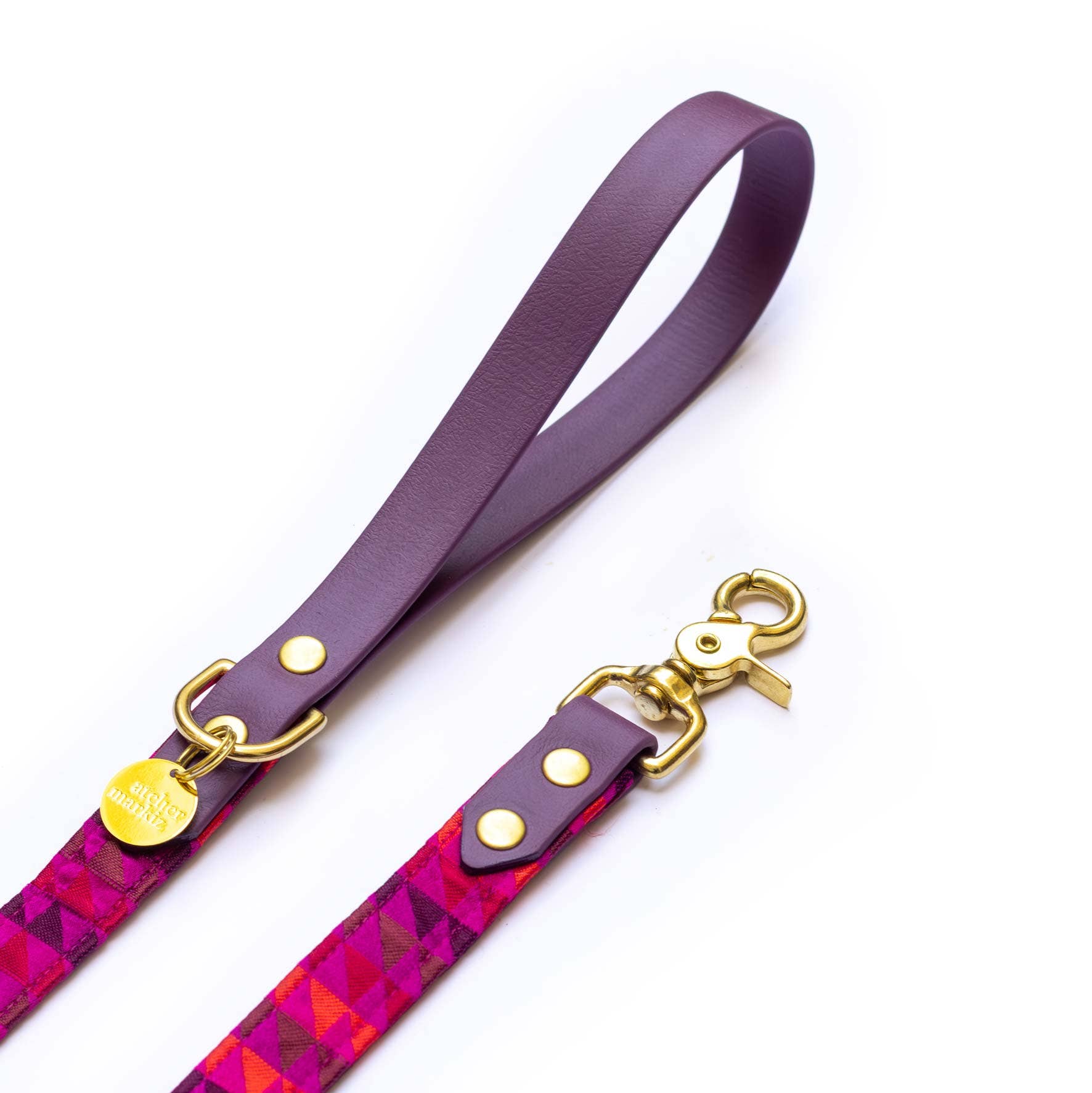 Looking for some pep? Our pink and purple Rio dog collar definitely doesn't go unnoticed! Its graphic and geometric fabric makes it a true fashion accessory, paired with a lovely prune Biothane for even more character. We love it for: • Its vibrant colors: purple, fuchsia, touches of coral • Its various sizes and adjustments, to suit all dog sizes • Its brass hardware, resistant to seawater and the test of time • Its great durability, even for dogs that pull • Its ultra-simple maintenance: a little water, soap, and it's ready to go again!