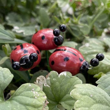 Decorative, unique Ladybird -Ceramic Ladybird for home, garden, creative decorations and gift for anniversary, birthday. Incl. with the stem. -Each Ladybird is glued to a green wire coated stem. The wire stems can be bent or cut shorten. -Each Ladybird handmade, so there may be differences in form, color and size. -They can be displayed alone in a vase or add some greenery or decorate your indoor plants. Stake them into your lawn, flower bed, plant pots. -They are also suitable for garden decoration but during very cold frosty condition I recommend to place them indoor as they might get deteriorated if the temperature gets below zero.: Size: Diameter of the leaf is ~ 30 - 1.18 Wire shank: 19 cm 7.48 Inch