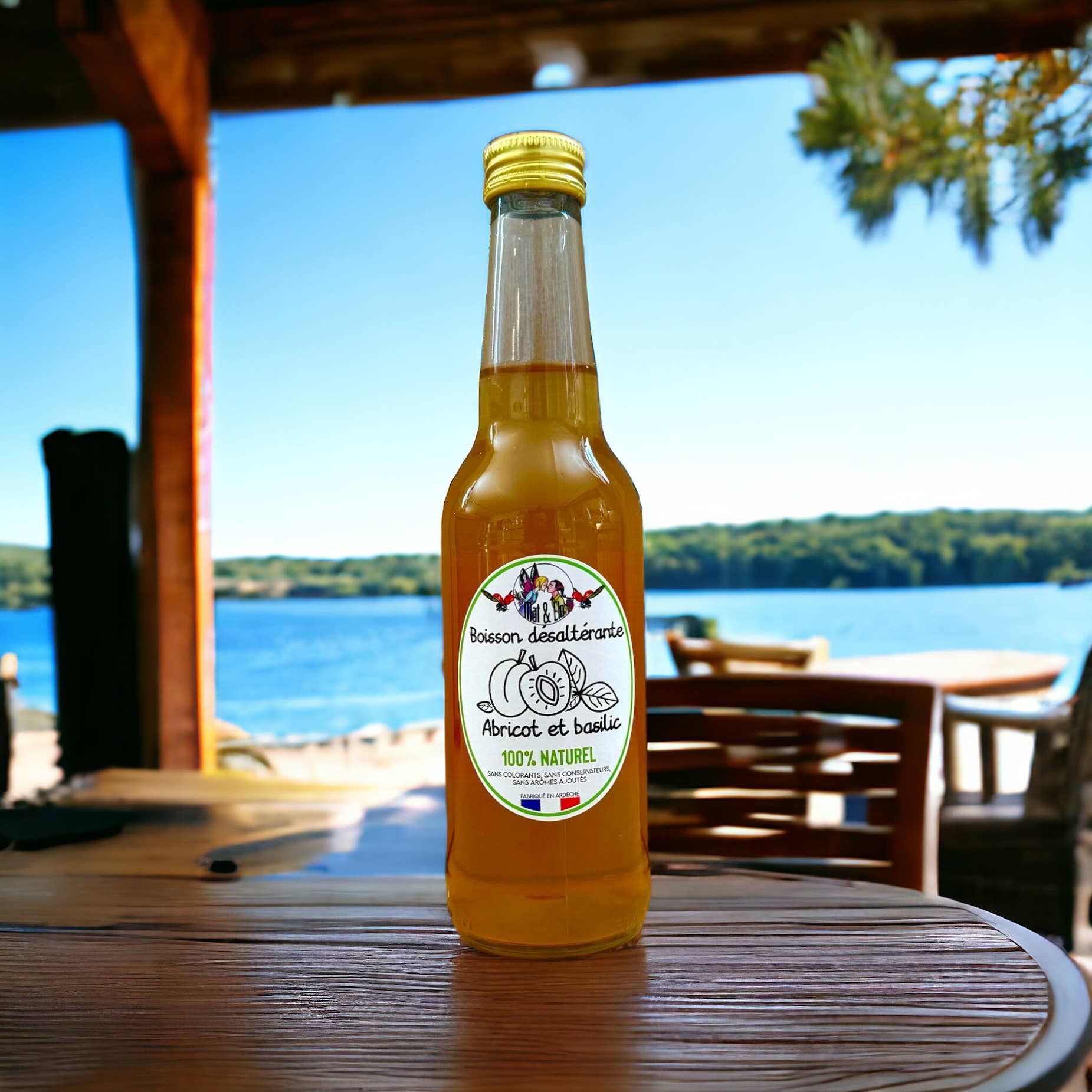 Made in France Diet: Alcohol-free, Dairy-free, Plant-based, Vegan, and Vegetarian Ingredients: Basil infusion, apricot juice, lemon juice, sugar. Production: Locally sourced, No antibiotics, No artificial sweeteners, No preservatives, and Non-GMO Season: Summer and Year-Round Shelf life: 24–36 months Storage: Shelf-stable Product Language: French Product Materials: Upcycled and Vegan Packaging: Plastic-free, Recyclable, and Recycled Production: Ethically sourced and Fair trade