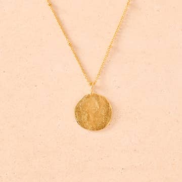 Minimalist and delicate, this necklace feels like a precious ancient vestige. Its hammered full moon design will protect you day and night. Combine it with our Luna earrings for the complete look. Pendant length : 17 mm (0.6") Length : 43 cm (16.9") + 7 cm extender (2.8") Gold plated (gilding : satin) Ethically made in France Keywords : gift christmas fall winter summer spring mother day valentine hypoallergenic decor stone holidays beach french safe 24k 18k guarantee greek antique trending paris birthday valentines saint valentin bijoux acier inoxydable stainless steel