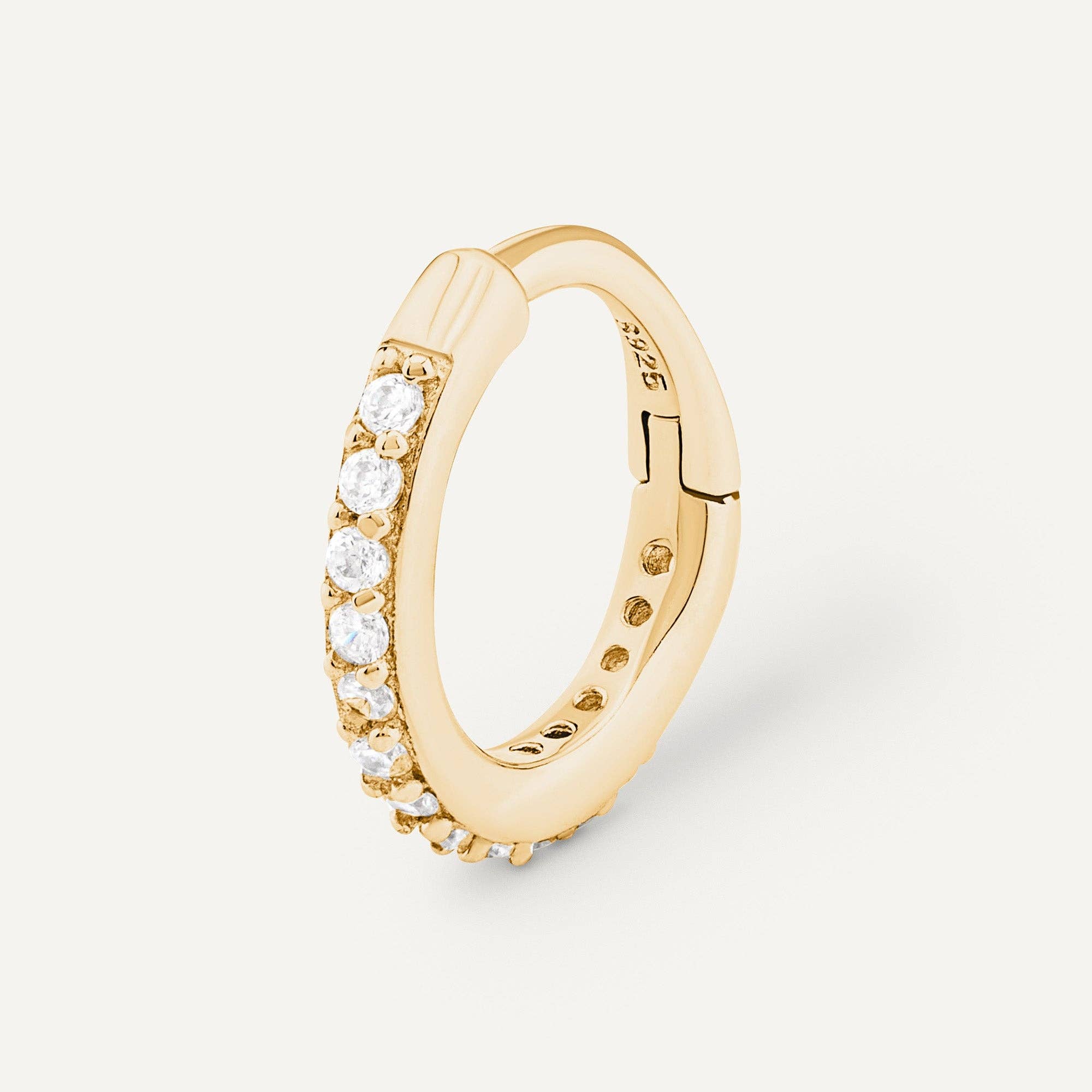 24-carat gold-plated S925 silver ear piercing (1 micron). Jewelry in the shape of a flower adorned with fine stones and a pendant in perpetual motion that will add an original touch to the piercing. The spring detail in the ear. This jewelry is worn on the Helix. It may also be suitable for the Anti-Helix, Tragus, Lobe, Conch, or Flat. Also available in silver color. Back post length: 0.7cm Back post diameter: 0.8mm Product sold individually