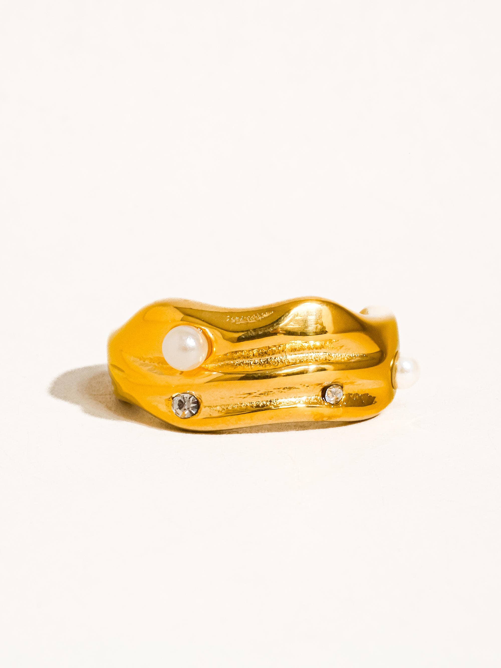 Maple 18K Gold Non-Tarnish Pearl and Rhinestone Ring