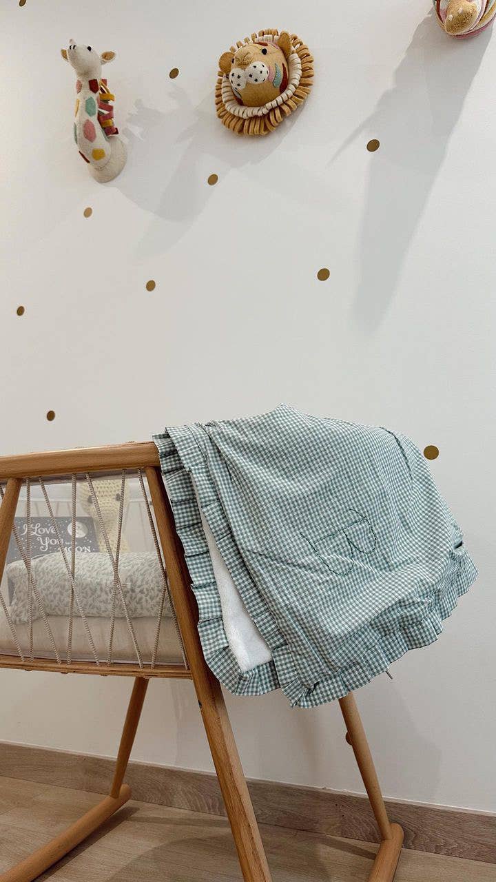 Lulle in pique, inner curl towel, you can choose a different color of ribbon, the tights are 70x70 cm. Perfect for newborn babies.