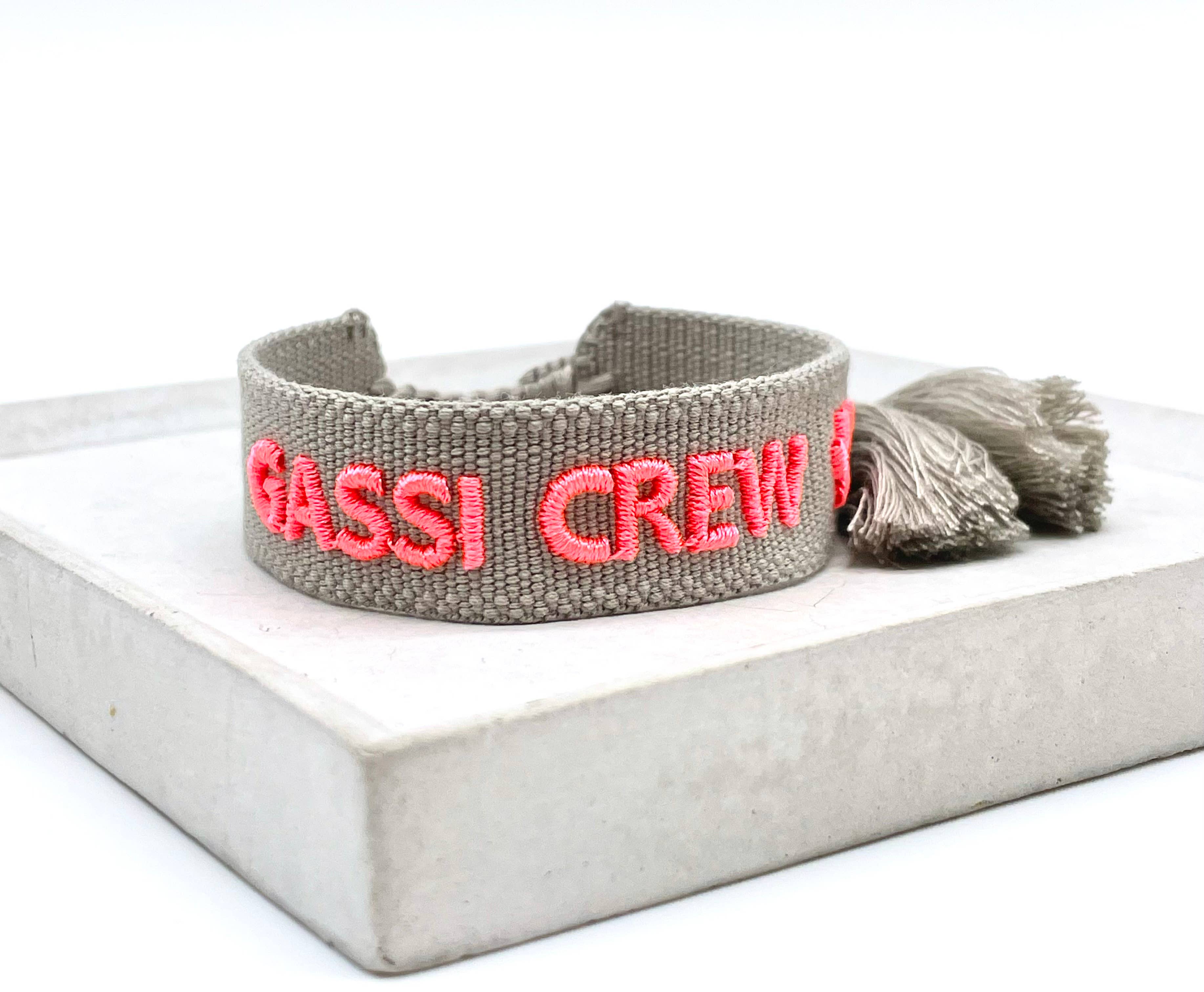 Statement Bracelet in Boho Style Comfortable and soft on the wrist, this casual statement bracelet will surely become your daily companion quickly. The ideal gift for your crew, your besties, and your loved ones. MOUNTAIN LOVE with Edelweiss Embroidery Bracelet: neon orange, pink border Text: pink / Edelweiss white yellow DELIVERY 1 piece Bulk packaging ONE SIZE Adjustable - the size is adjusted via the cords (sliding knot). Approx. 15.5-23.5 cm Height: approx. 18 mm MATERIAL 100% polyester, washable Tightly woven and embroidered