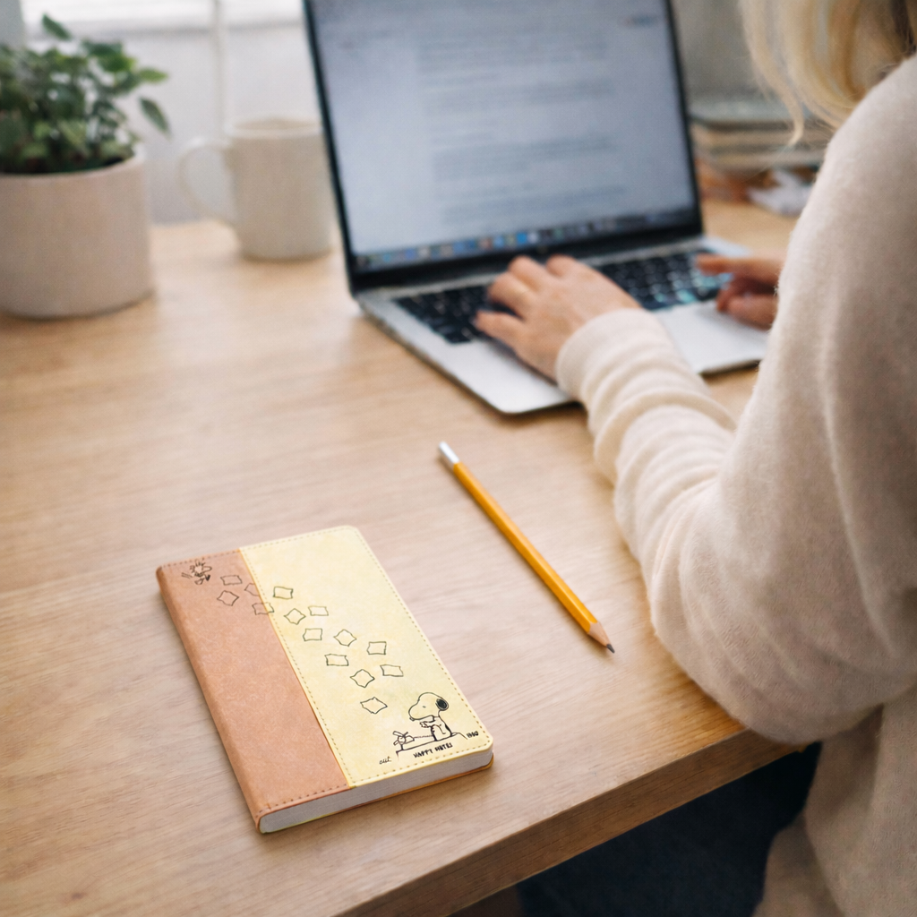 Do you want to keep your notes in style? Then this Snoopy notepad is just right for you! Packaged in an elegant cover and delivered with a matching pen, every to-do list or spontaneous idea becomes a real eye-catcher. Whether in the office, at school, or on the go – Snoopy accompanies you everywhere!