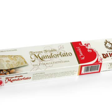 Product Name: Mixed artisan nougat covered with dark and white chocolate 300 g HANDMADE NOUGATS COVERED WITH WHITE AND DARK CHOCOLATE Nougat is a mainly Christmas dessert, typical of many areas of Italy, composed of a mixture of almonds and honey and sugar. NOUGAT WITH DARK CHOCOLATE Ingredients: 60% almonds, honey, sugar, vanillin aromas, 0.01% mandarin essence. 20% dark chocolate coverage: (Min. cocoa 60.1%), sugar, cocoa mass, cocoa butter, soy leticin, vanilla extract , mandarin essence 0.01%. Nutritional statements Energy 2351.97 Kcal - 571.04 Kj Total Fat 50.05g of which saturated fat 7.91g carbohydrates 35.59 g of which sugars 22 g fibers 10.16 g Proteins 19.21 g Sodium 0.025 mg