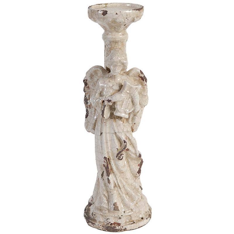 This white washed Angel candle holder is great when displayed in pairs. Lovely addition to your french country design project, a nursery or a bedroom.