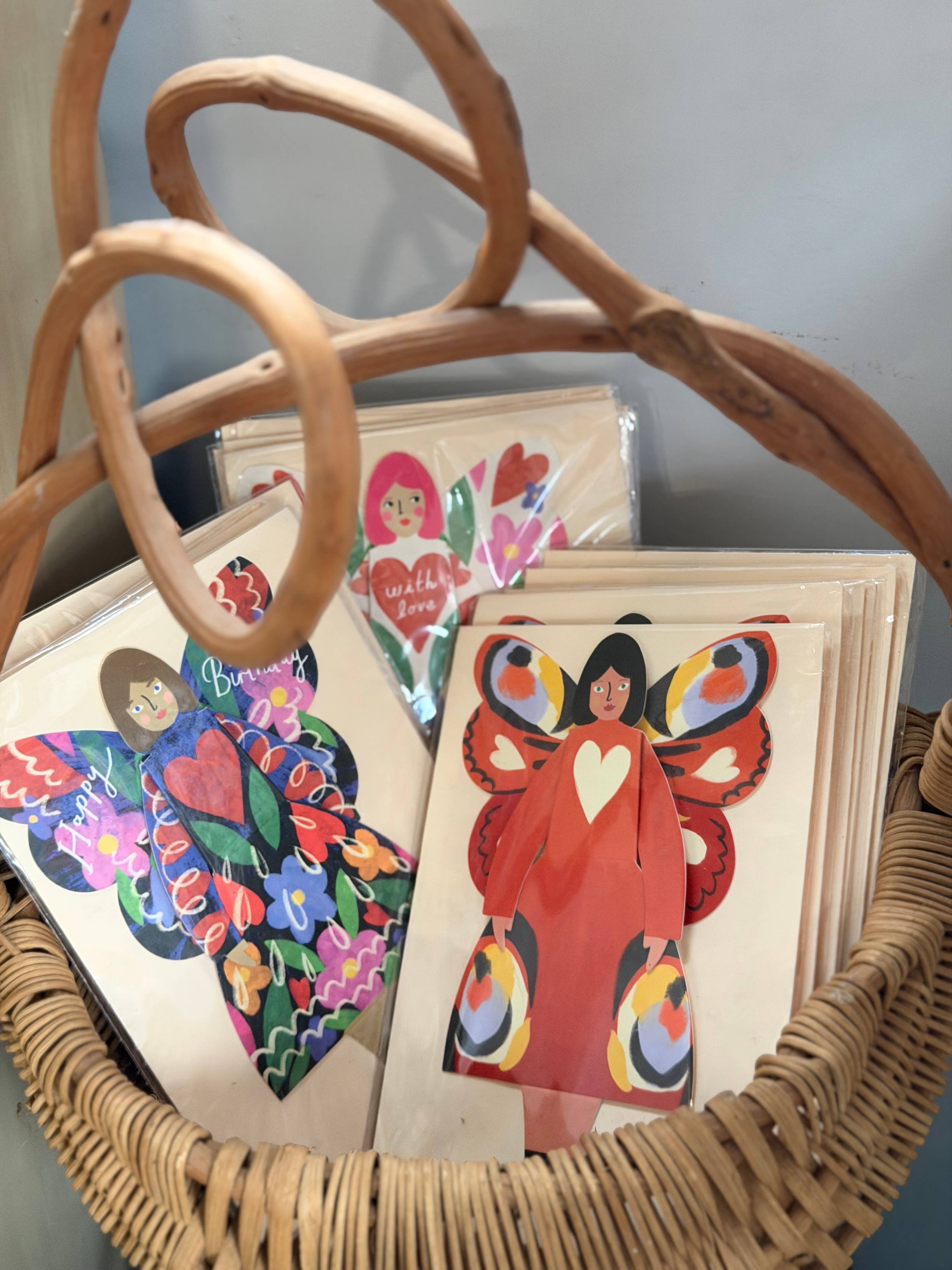 Introducing our magical new SITTING CARD range! Butterfly Women®️ (®January 2025) are an exclusive, protected design by Kitty Kenda Papergoods. This decorative card makes the most magical and unique gift - created to sit on a coffee table, mantlepiece, or perhaps to perch on a bookshelf, though she can also stand, or hang on a loop of ribbon. Suitable for all occasions and ages - it’s as irresistible to children as it is to adults! Talking points? Made from a luxury G.F Smith 300gsm sustainable cardstock, each card takes 6 hand folds to take it from flat to FLUTTER! Hand finished before being packed in a biodegradable cello. Info card included in back - remind your customer to include the note in the envelope :-) Avoid folding at the waist and knees if you would prefer to keep the card hanging or standing When displaying, always ensure the hands are placed on top of the skirt Envelope 14 x 18cm | Push flat and post as a standard letter (Larger than our usual C6)