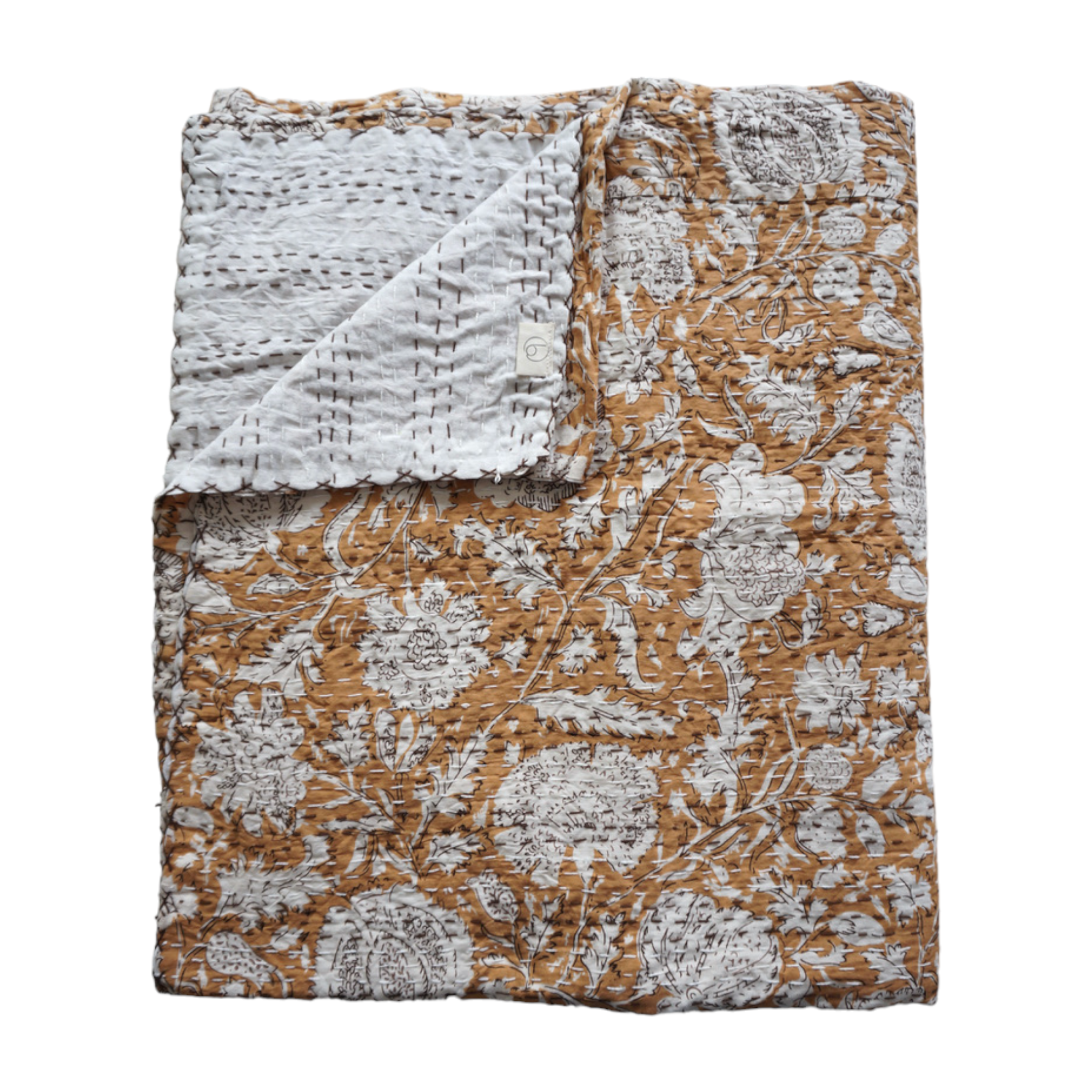 This bedspread was handmade with the know-how of men and women in India. The men print the fabric using the wood block technique and the women do the quilting. That is to say, the manual assembly of the 2 pieces of cotton that make up this bedspread by aligned and repeated stitches. We support women in villages to enable them to emancipate through this work. This bedspread will dress up your bed with character. Measurements: 226 x 260 cm Composition: Cotton We recommend cold washing.