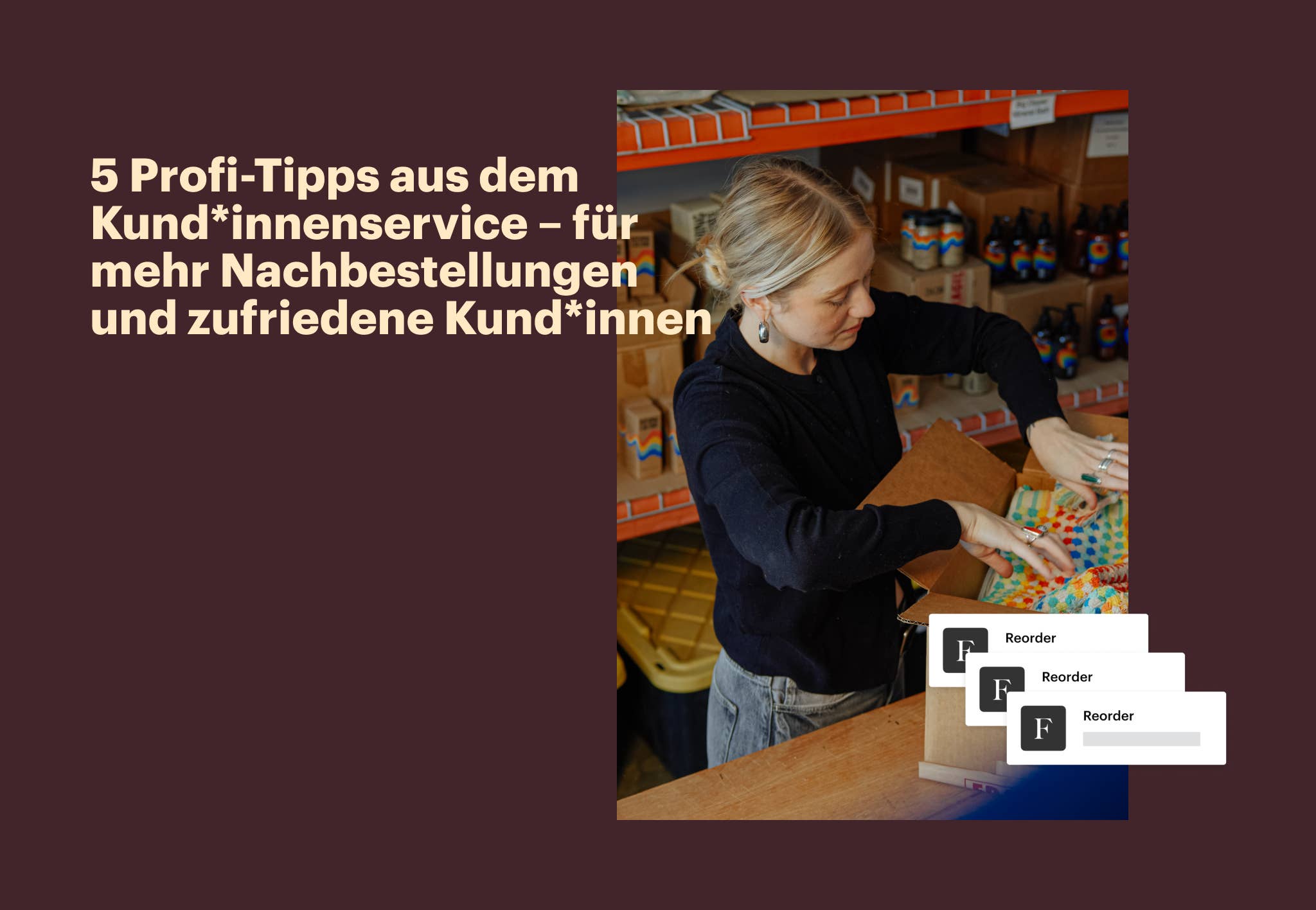 Profi-Tipp: Überprüf Bestellprobleme in den Analysedaten des Kund*innenservices und such nach Trends. Kleine Anpassungen können große Auswirkungen haben.